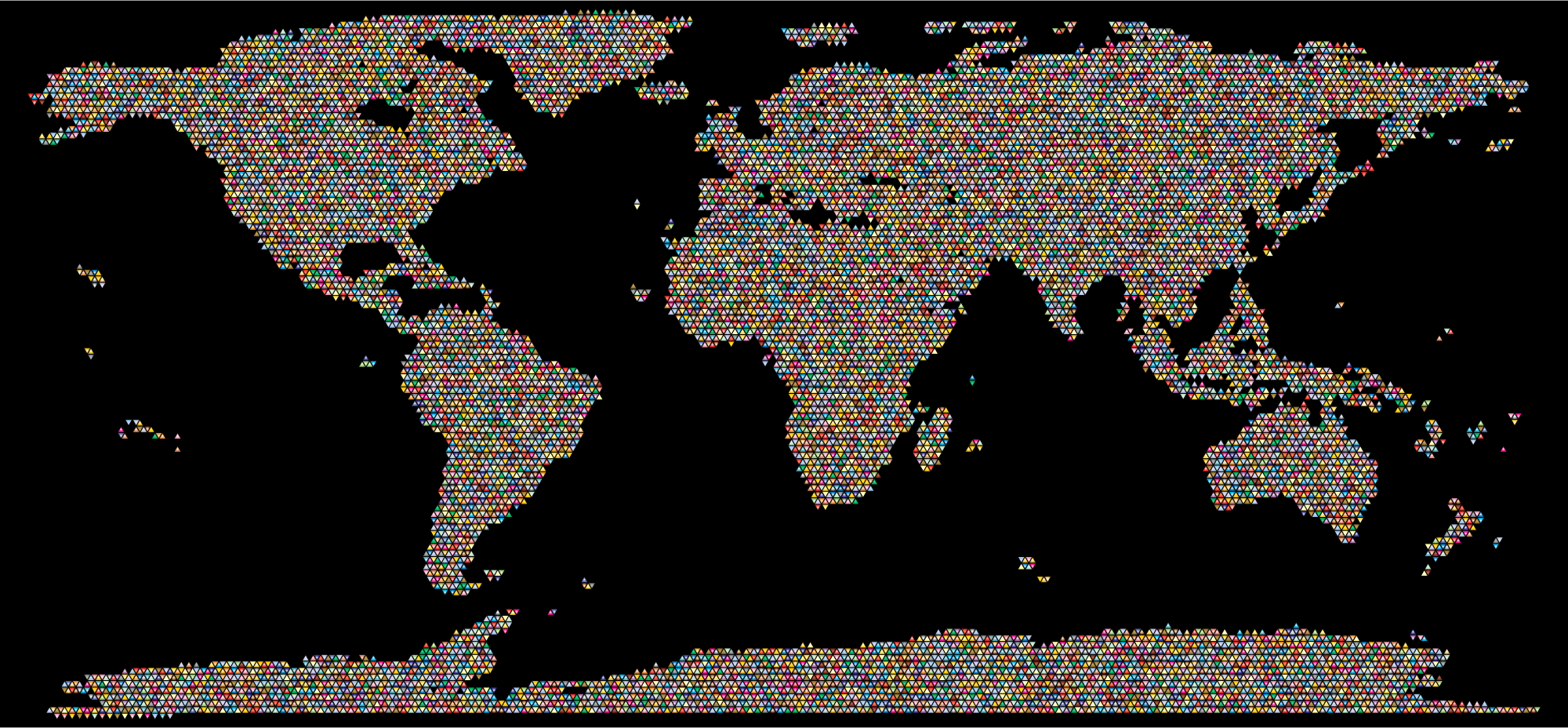 Prismatic World Map Triangularized Mosaic 2