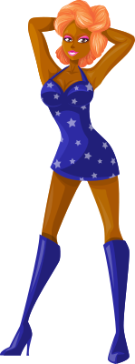 Comic characters blue dress fashion female ginger girl lady redhead sexy short short skirt skirt star starry woman