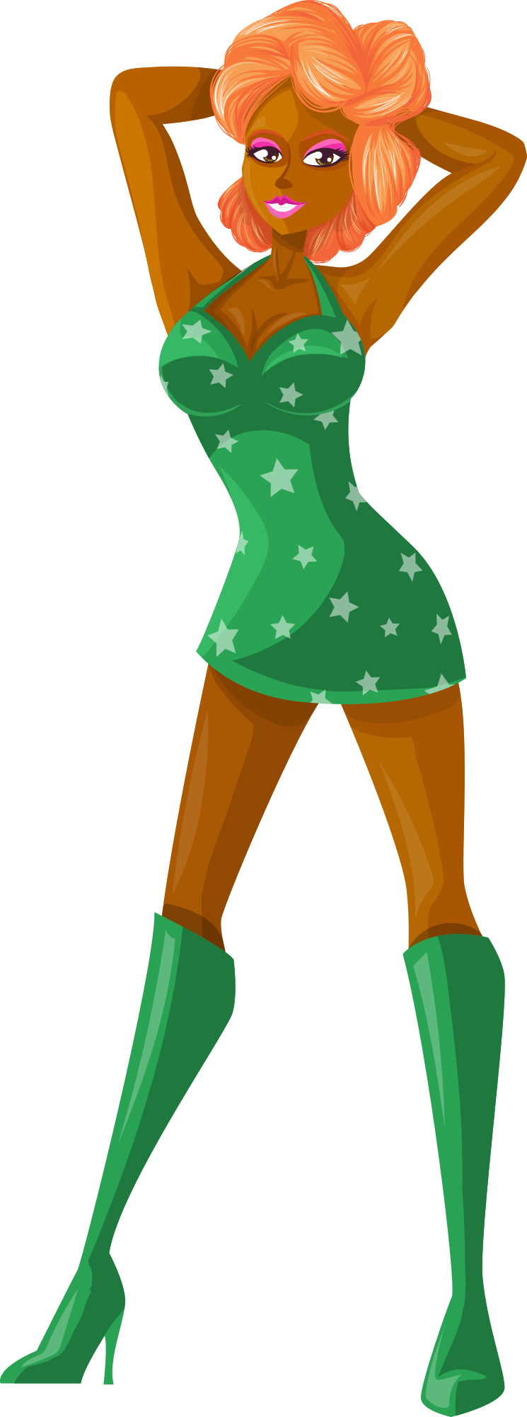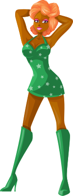 Comic characters dress fashion female ginger girl green lady redhead sexy short short skirt skirt star starry woman