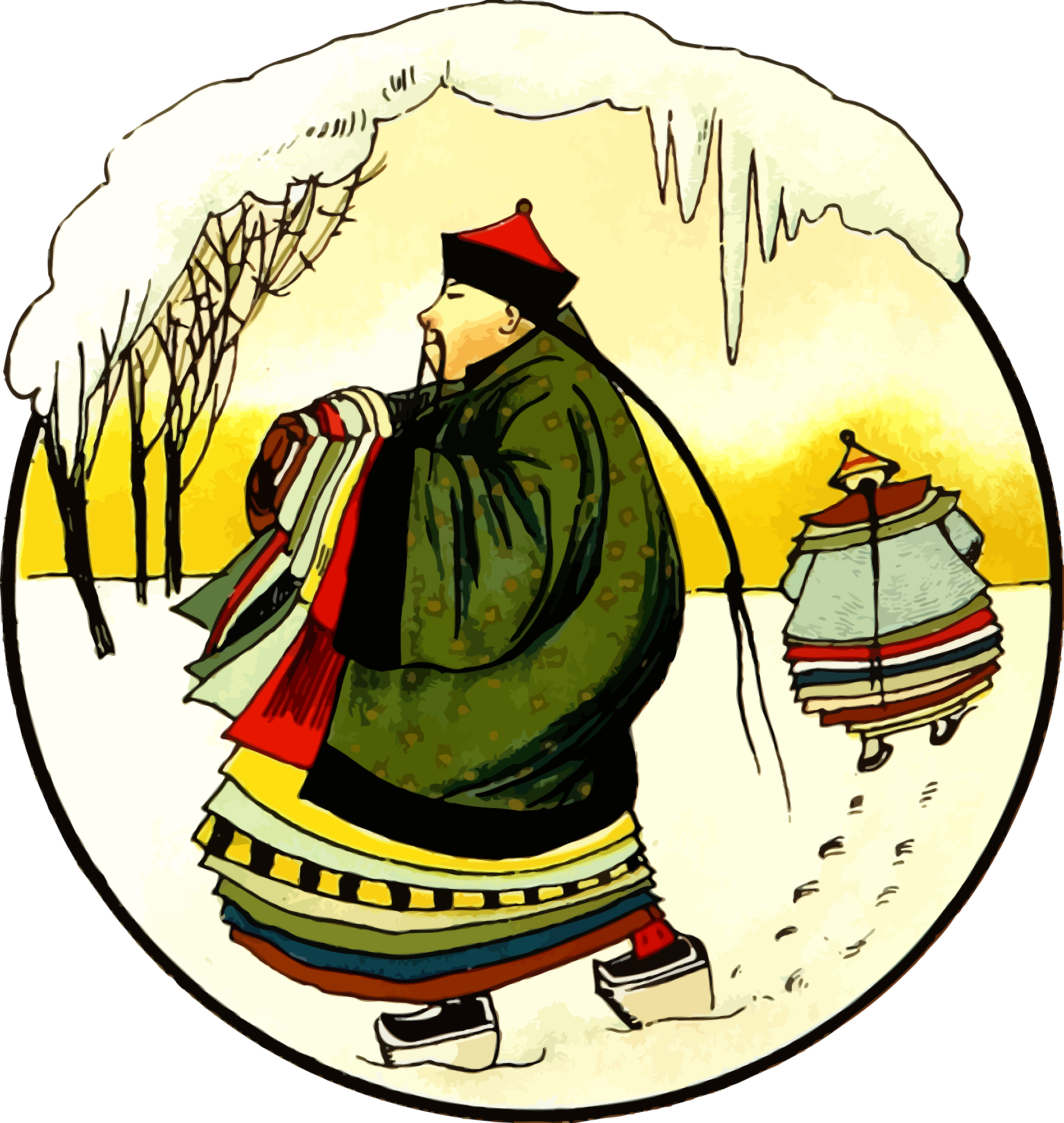 - China Chinese Semi-Realistic People country countryside snow walking winter