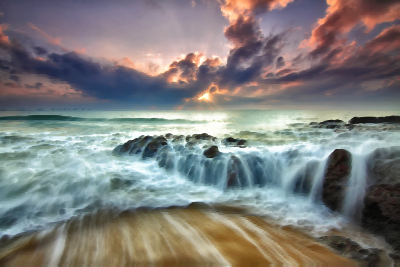 Surreal Beach Sunrise derived from https://pixabay.com/en/sunrise-dramatic-sky-seascape-1634125/