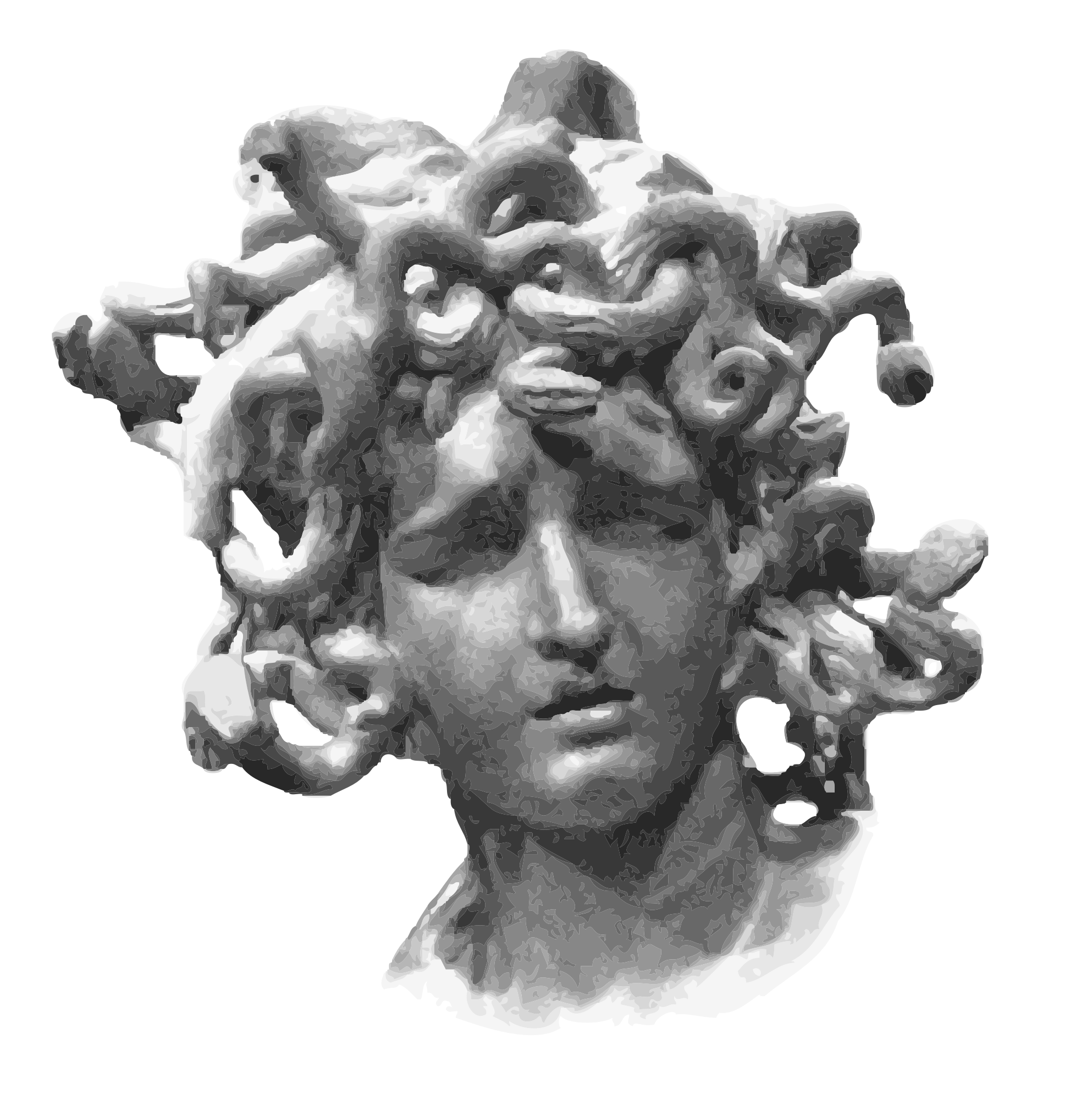 Medusa head sculpture. Original picture from wikimedia commons.
