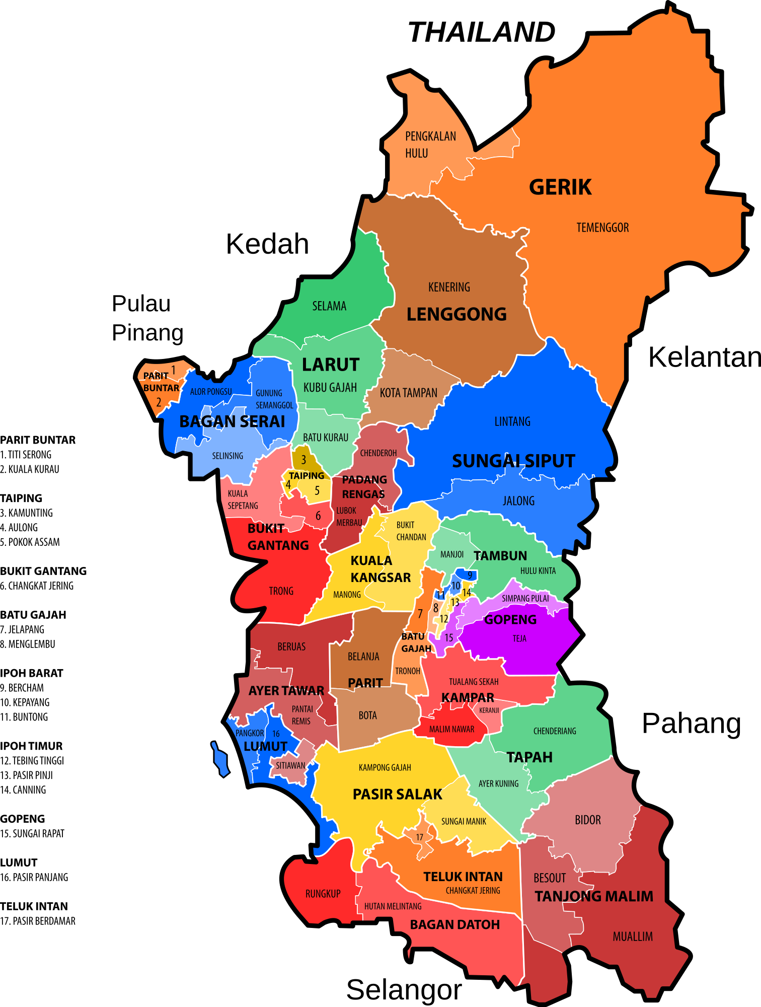 New electoral map of Perak based on latest re-delineation.