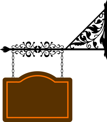 A blank sign hanging on decorative cross-piece. Add your own message or design.