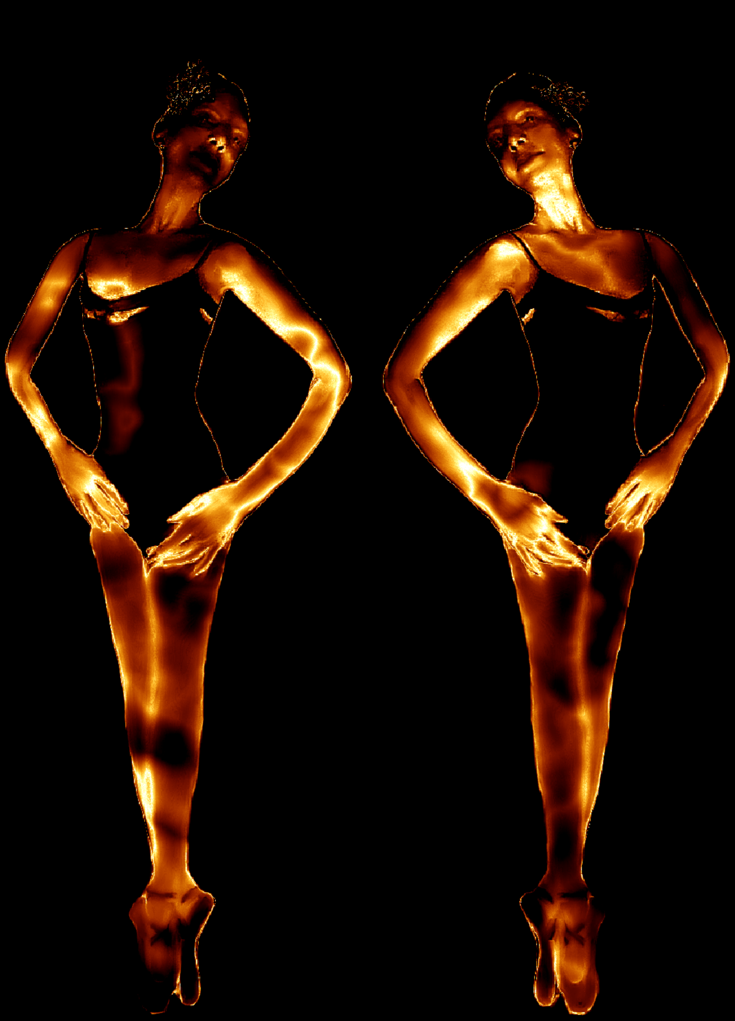 Golden Ballet Duo as a mirror image on pointe shoes by ~ His Sonshine Art ~ represented by Ariel Arts to OpenClipArt.org for Creative Commons Use.