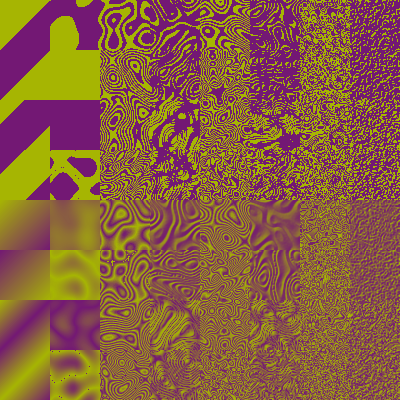 A set of turbulence filters with duotone colours in sixties psychedelic poster style.