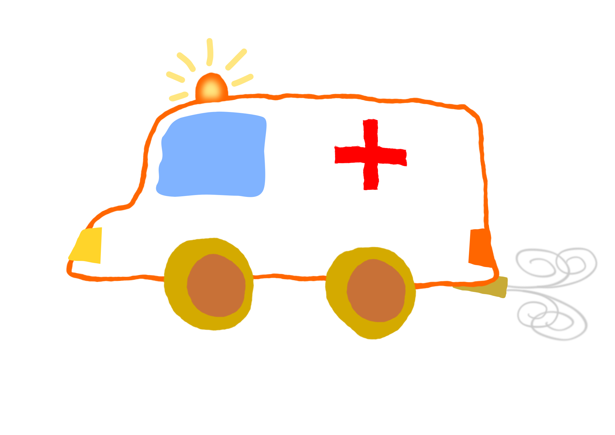Ambulance made from clipart van post. Made with forms irregular and deformed.