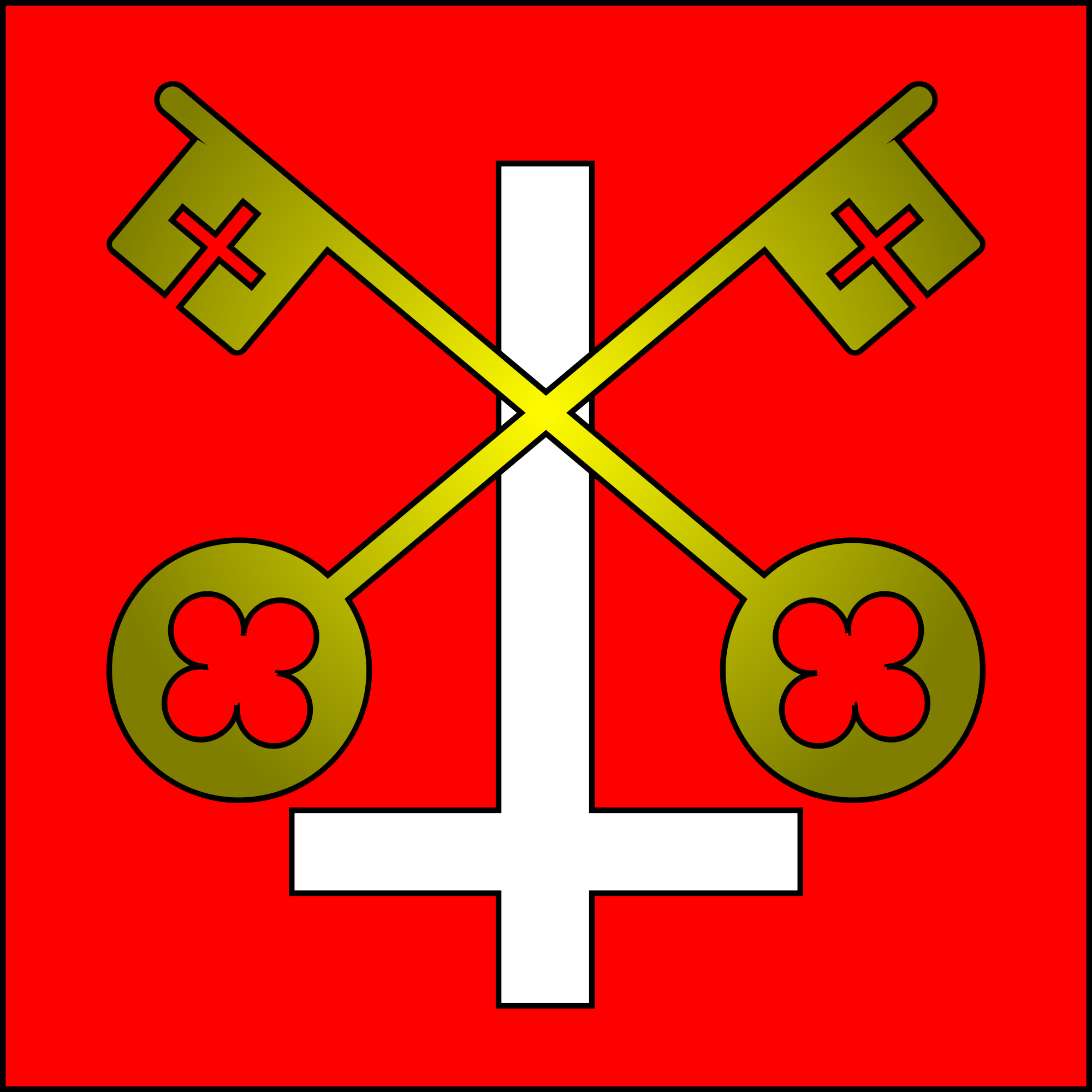 The traditional arms of St Peter, Crossed Keys with an upside down cross of a red field.