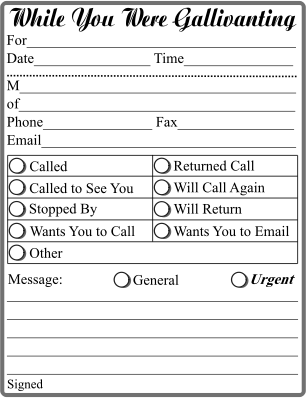 A parody of the "While You Were Out" form