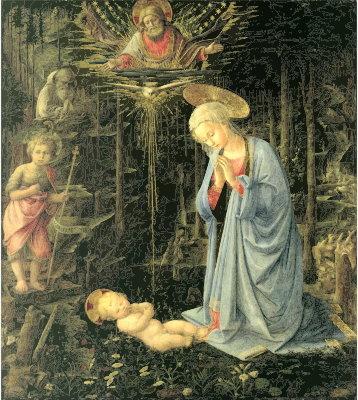 The Adoration In The Forest from https://commons.wikimedia.org/wiki/File:Fra_Filippo_Lippi_-_The_Adoration_in_the_Forest_-_Google_Art_Project.jpg