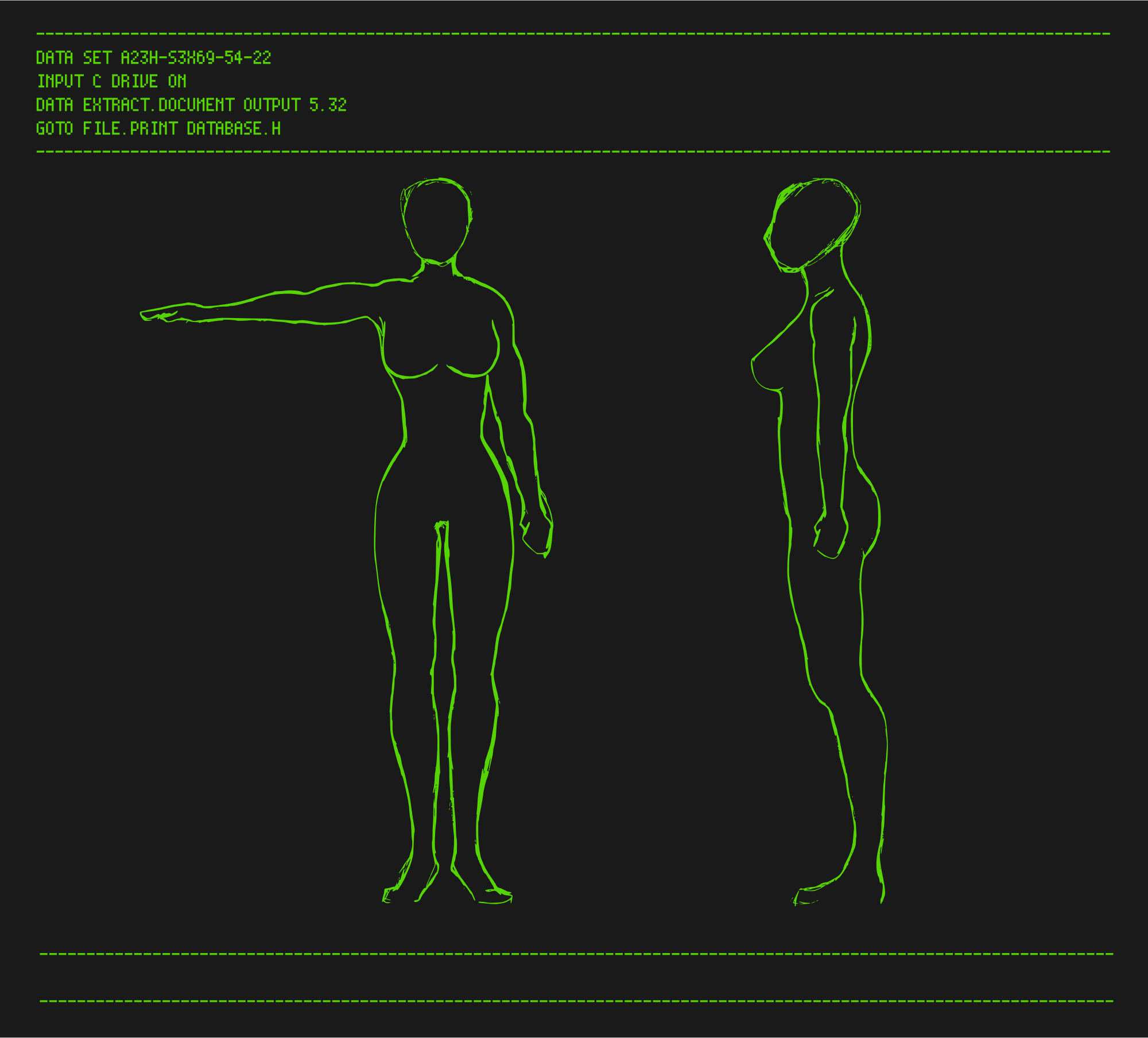User Benalene over on opengameart.org released the base sketch (of the woman) in 2010 (careful! many images on that site are not public domain, although this one was) and for some reason I thought it looked like a good base for a lady robot programming screen, like in that old 80s movie Weird Science. I don't know why, I just felt like it had to be made!
