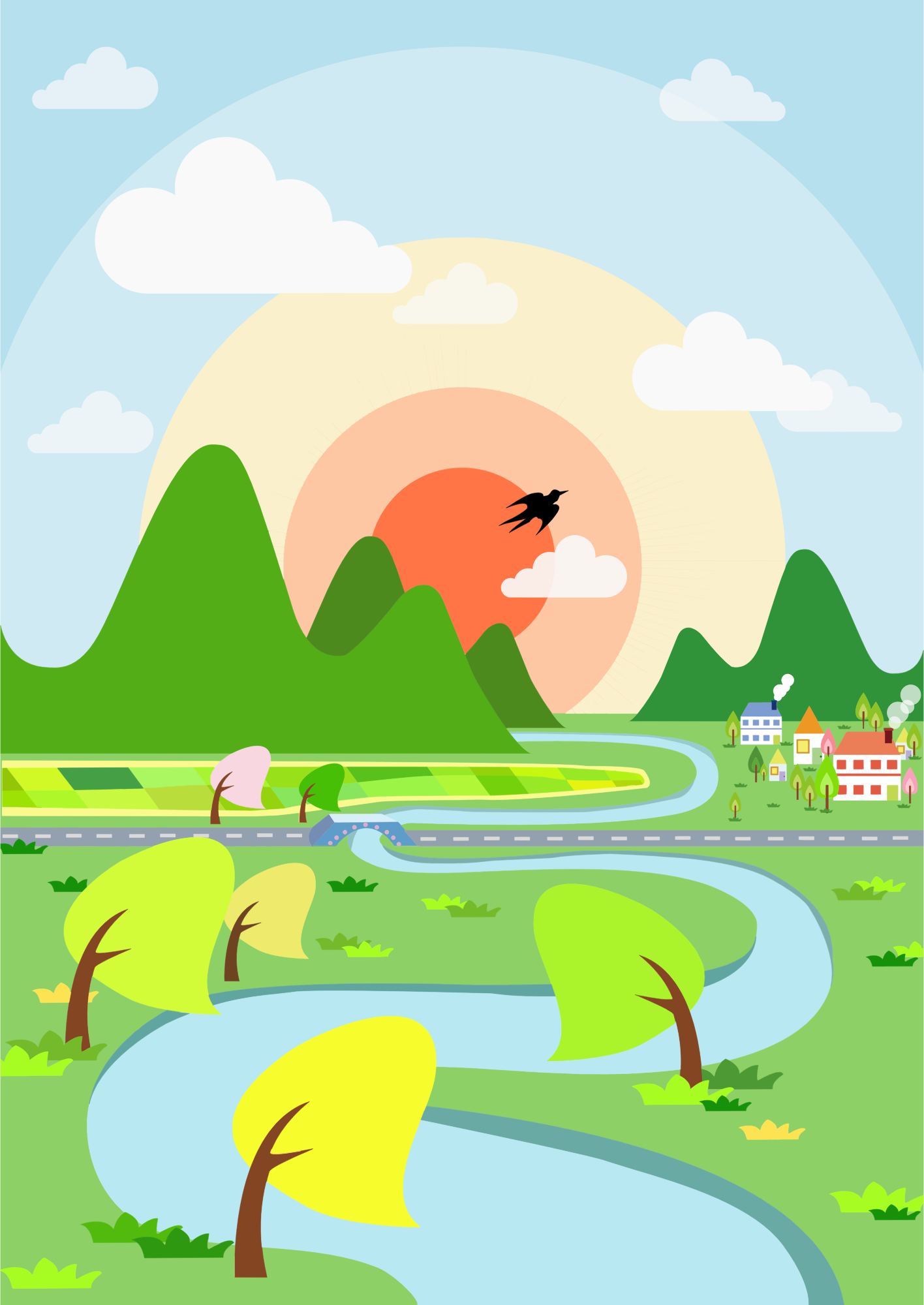 - Cartoon City Comic Hintergrund Landscape landscapes Nature Rural Source+Pixabay Spring Town Village scene