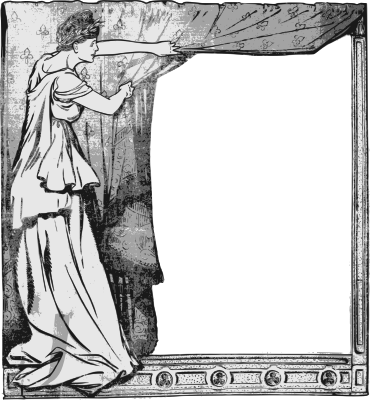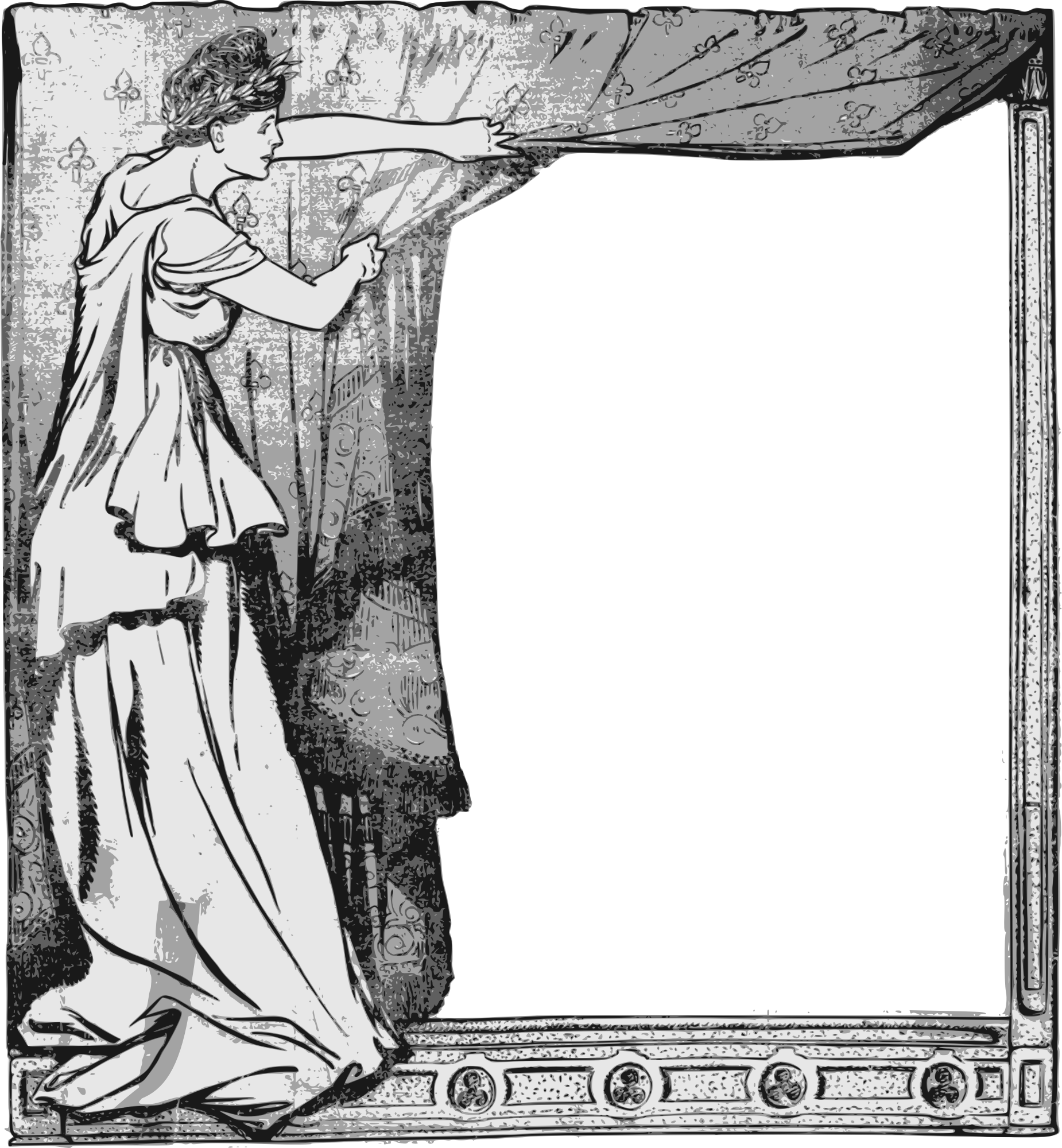 This lady is pulling the curtain back to reveal... whatever you add to the frame!