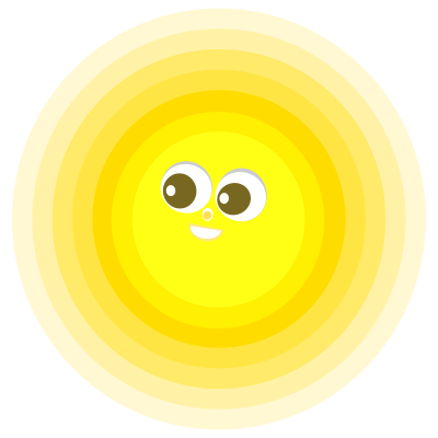 Smiling Sun character, radiating.