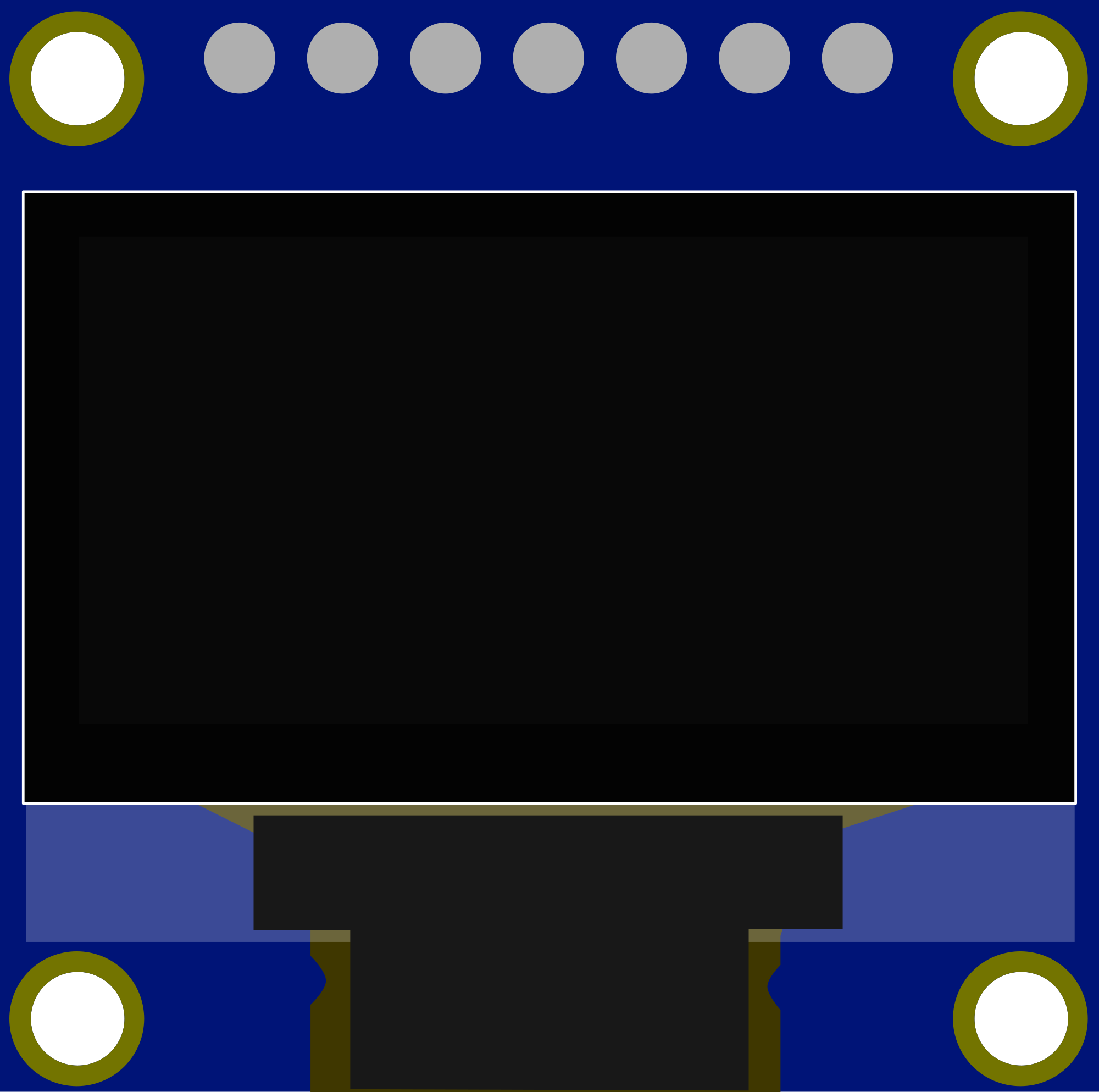 OLED Module with SPI Pinout. Yellow/Blue and Blue examples in SVG. Use a dot-matrix-font like "renegade master" for text.