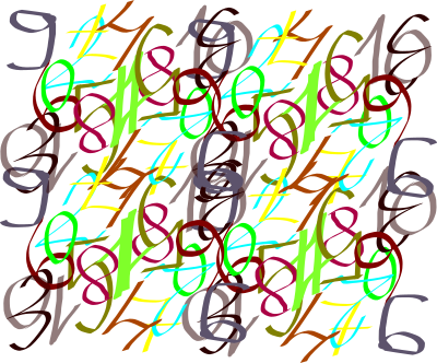 A set of letters and numbers drawn with calligraphy tool.