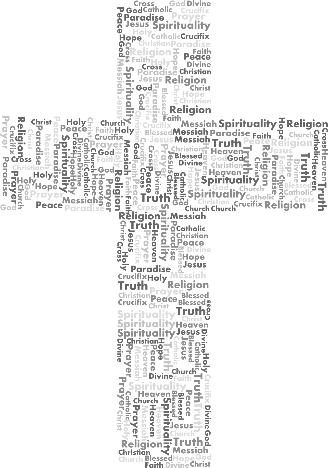 - Catholic Christ Christian Church Cross Crucifix Divine Faith God Holy Jesus Messiah Prayer Religion Spirituality Typography Type Text Words Wisdom Philosophy Word Cloud Tag Cloud