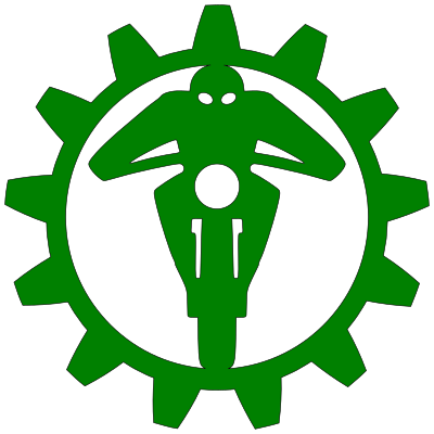 Custom (?) logo of a vintage motorcyclist set inside a mechanical gear