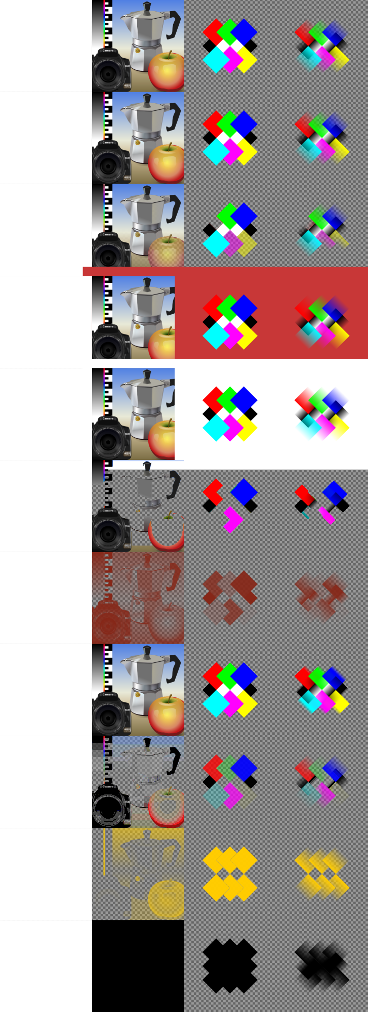 Inkscape filter presets, called "Fill and Transparency" from the filter menu, including: