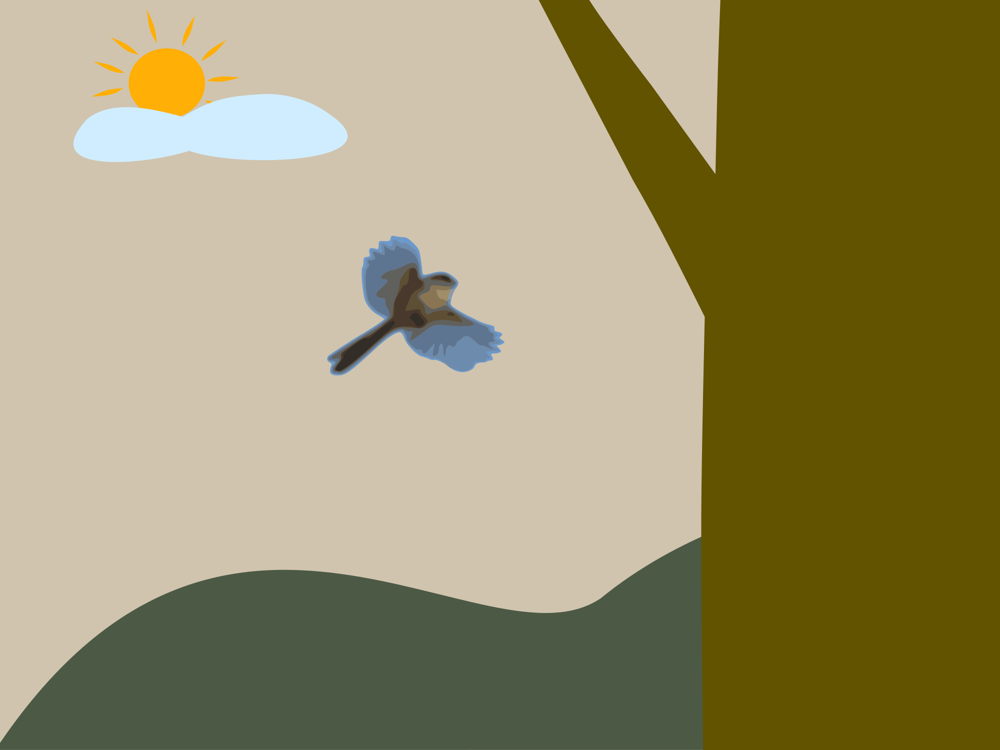 This image depicts a landscape where a bird is flying .This bird is called "Long-tailed tit".I clipped only this bird image from the photo I took with Inkscape.