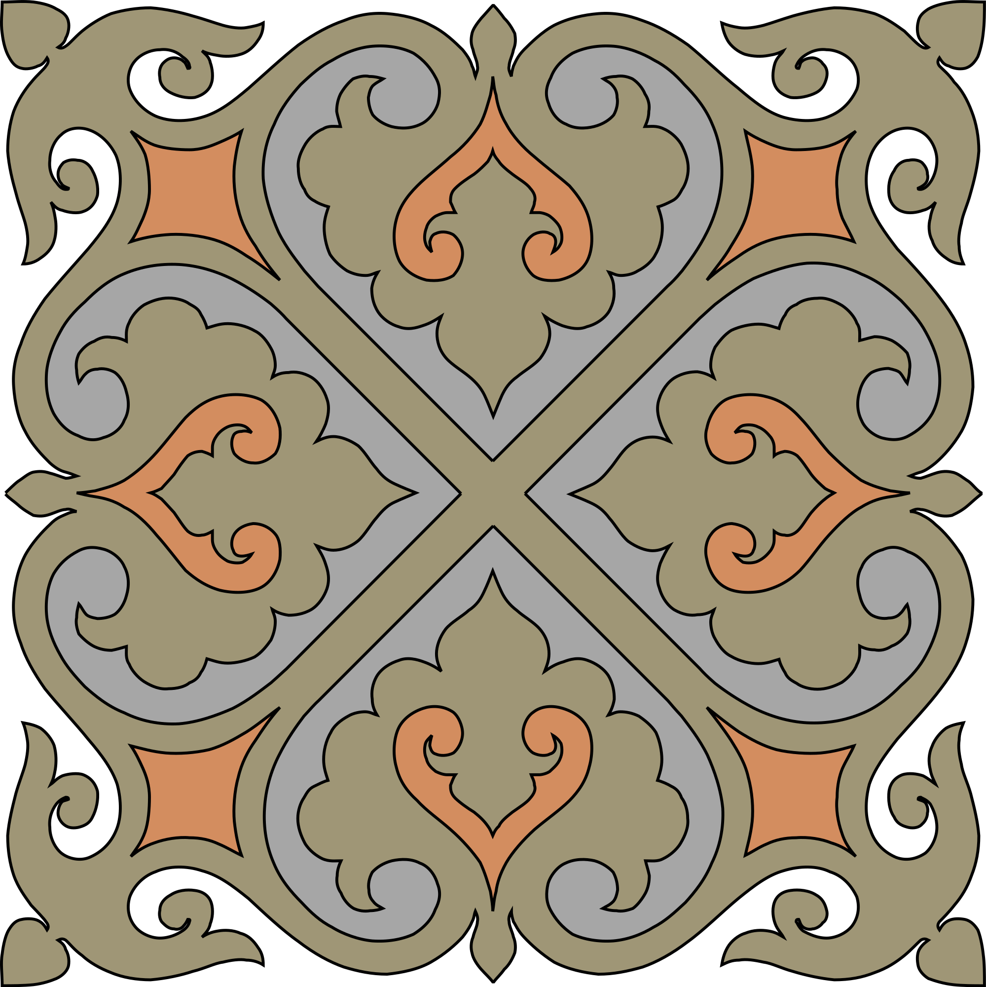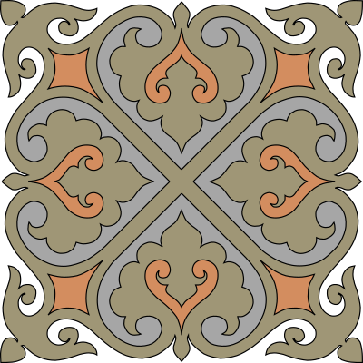 This reminds me of the beautiful paving tiles you see in old buildings in the south of Spain, Morocco, or Tunisia. The original was amazingly well-traced for something that was copied out of an old book, but it was just a collection of a large number of path segments, so I joined these together to make closed paths. It can be used on its own or as a seamless repeating pattern.