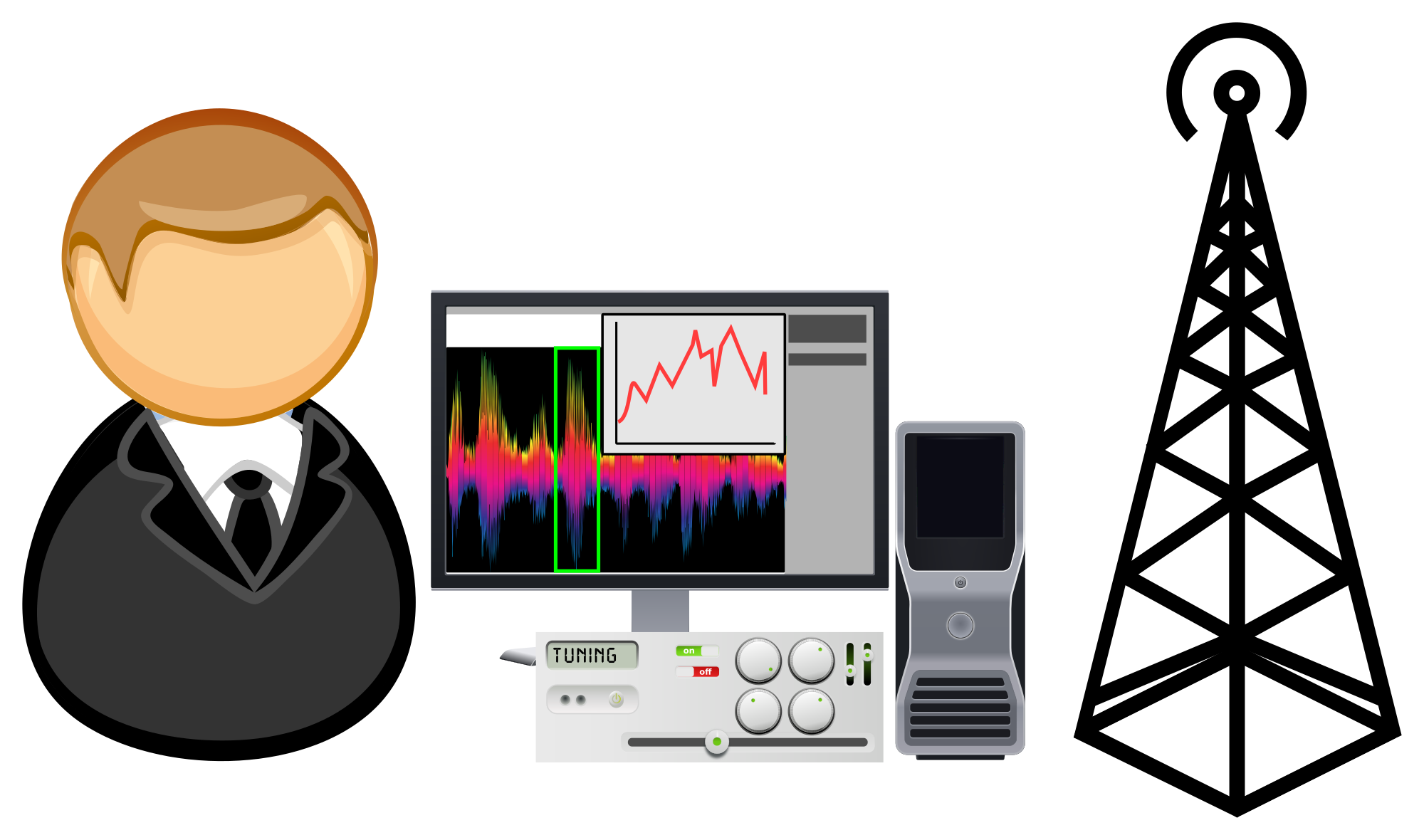 - analyser antenna Comic characters computer device display electronics frequency knob radio receiver signal spectrum transmitter tuning