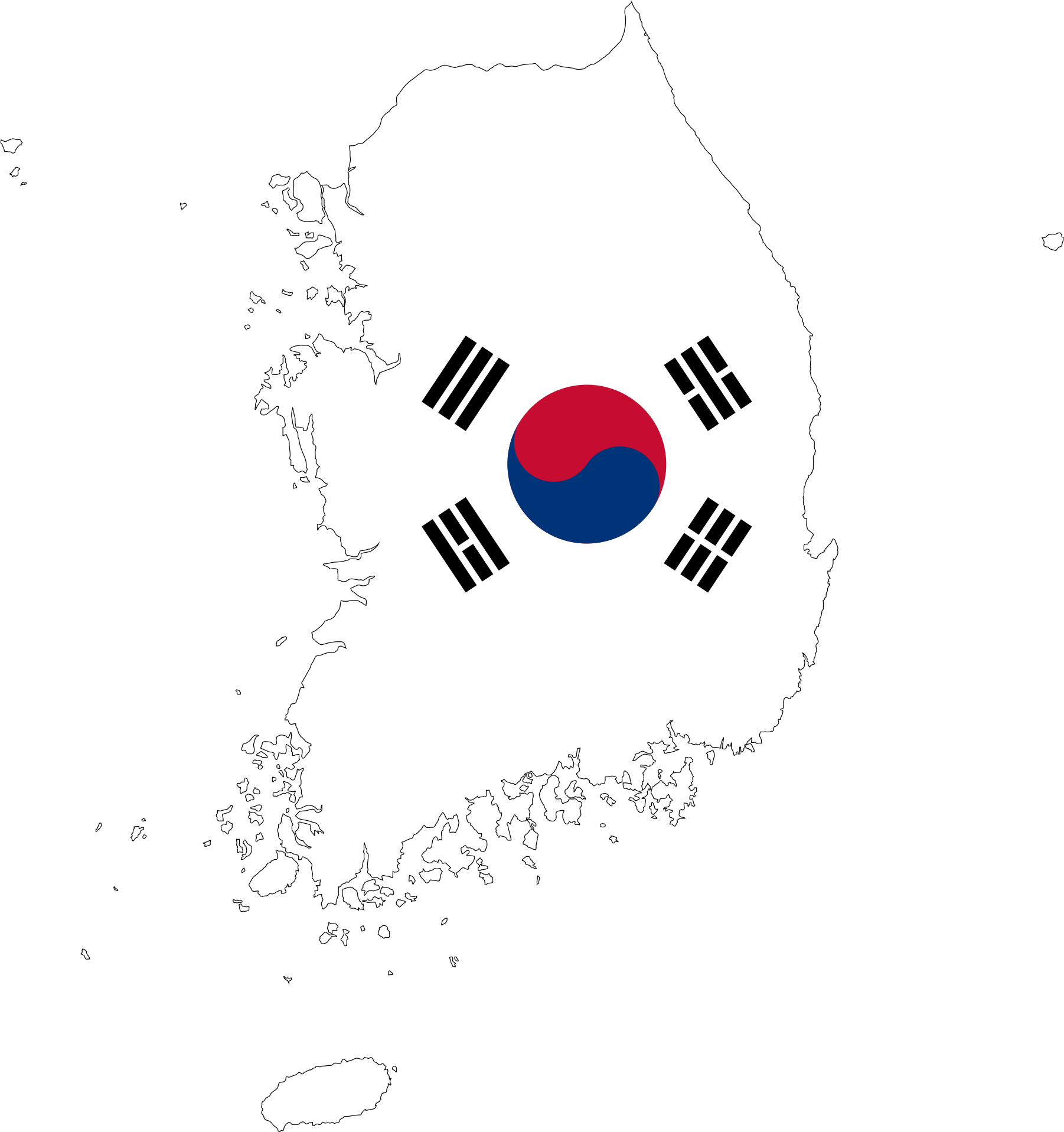 South Korea Map Flag With Stroke