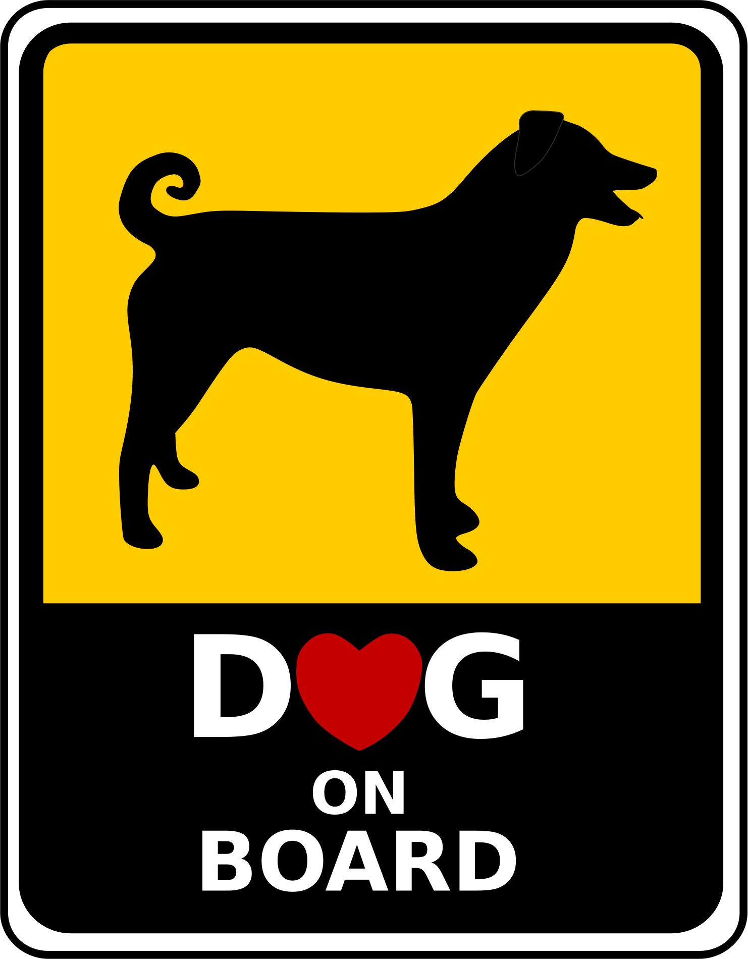 Dog on Board sign-Dog with floppy ears and curled tail; added heart to "dog"