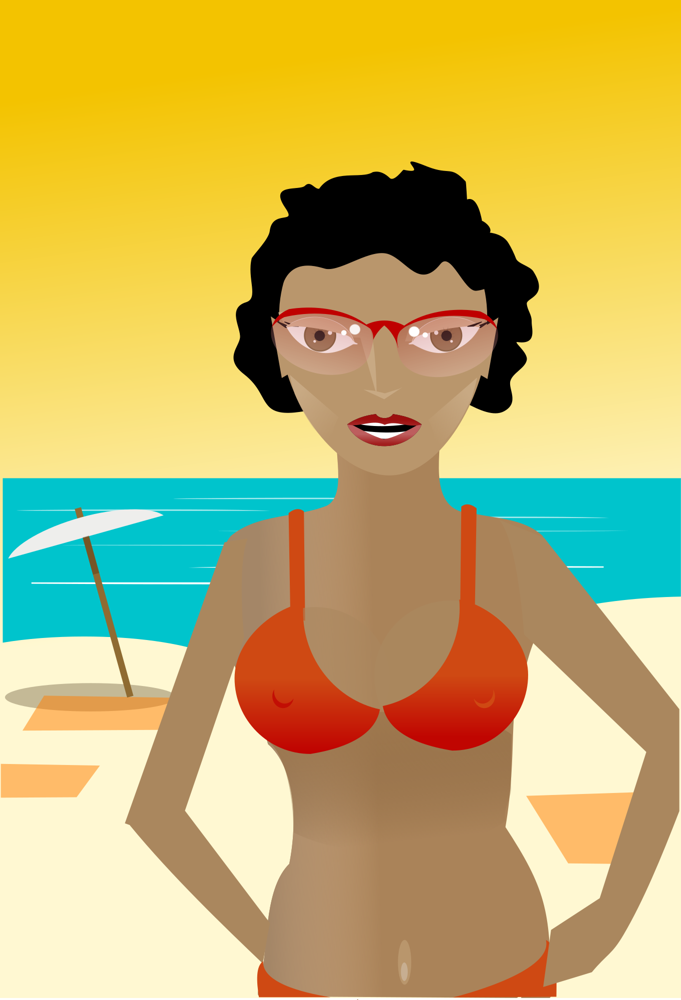 - Africa African bathing+suit beach bikini Comic characters girl lady relaxing remix+64735 sand summer swimsuit tropical black woman female eyeglasses