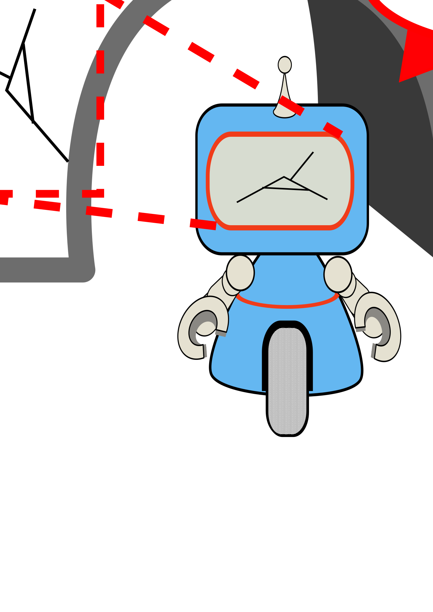 A robot inspecting a bridge for failure. Created using other assets in OpenClipArt