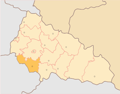 Berehove District of Zakarpattia Oblast, Ukraine, and its boundaries with neighbouring countries, highlighted.