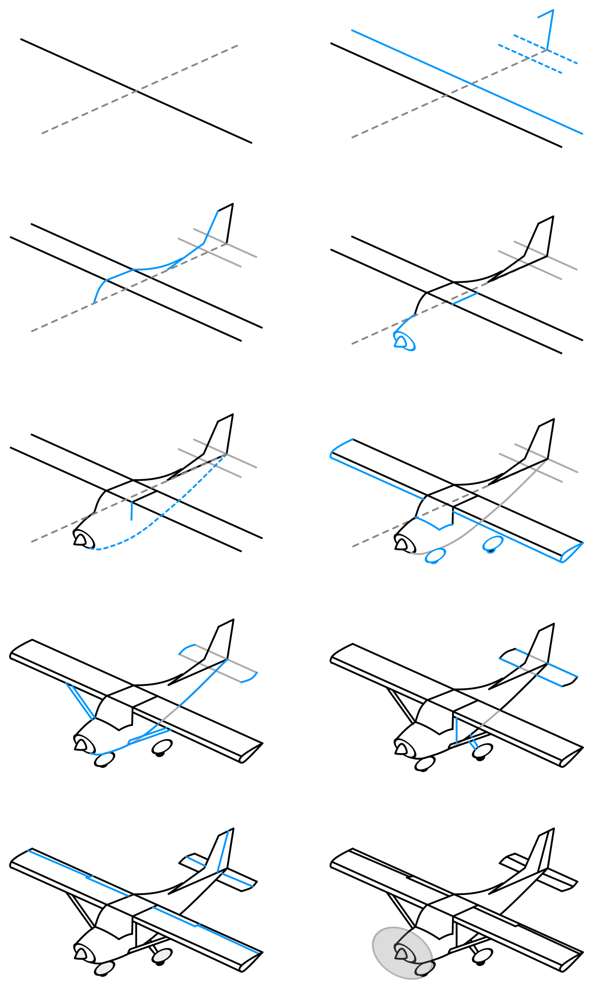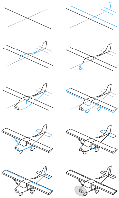 Draw a single engine airplane