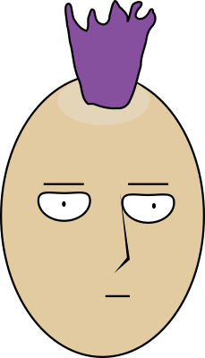 This man has a purple mohawk. It makes him look a bit like a vegetable head?