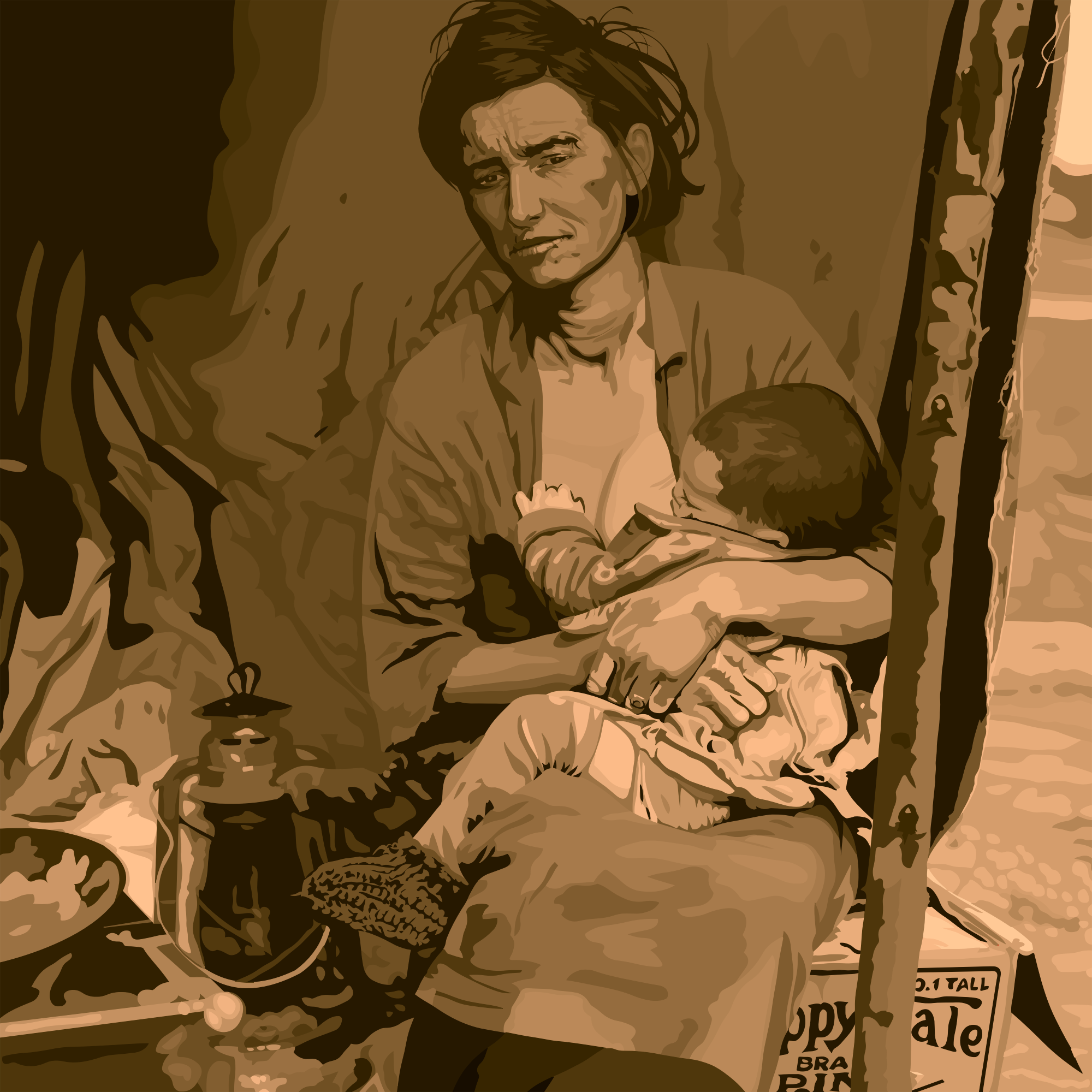 Migrant Mother By Heblo https://pixabay.com/en/migrant-mother-refugee-child-family-2169284/ . Awesome artist.