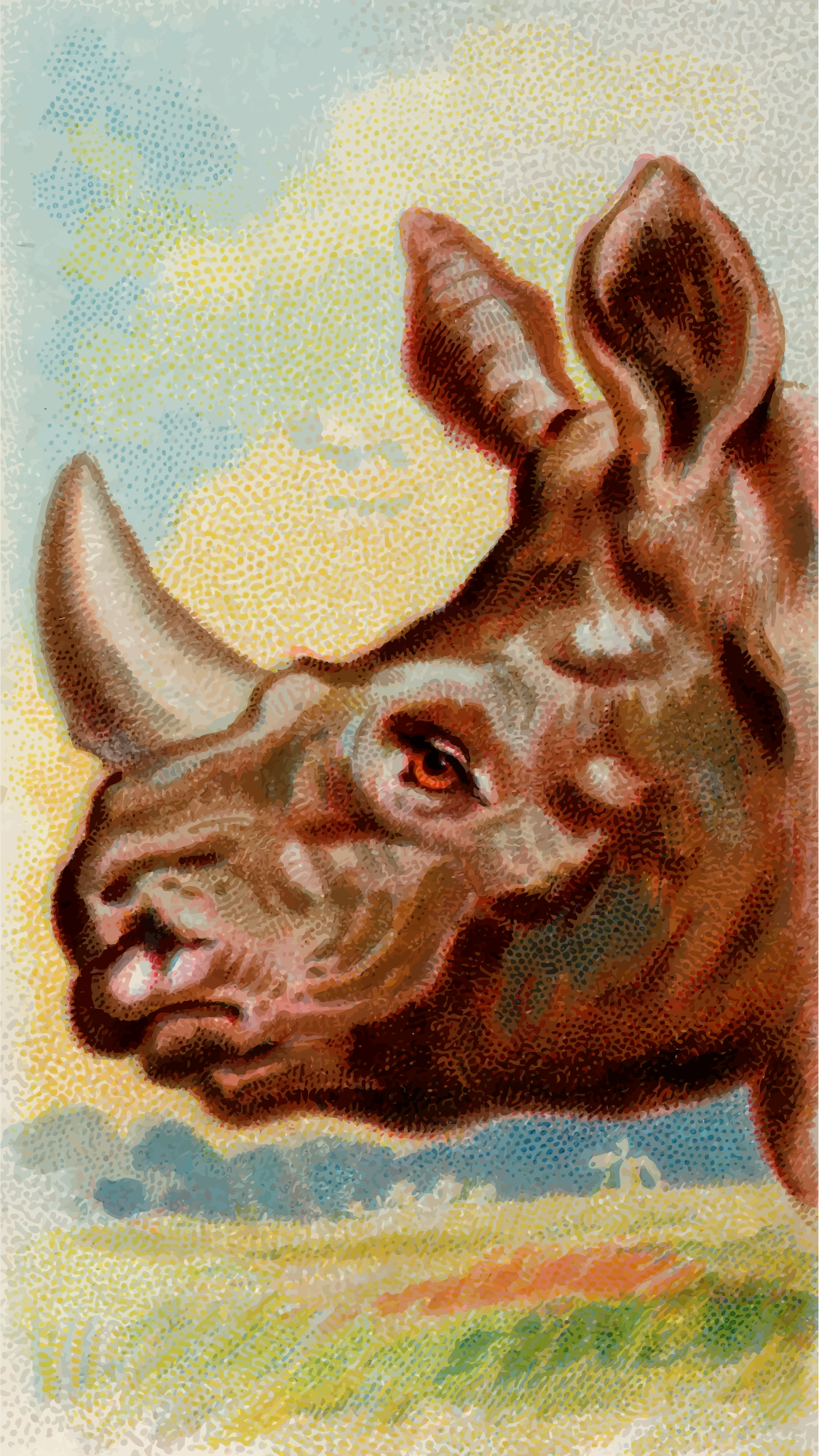 One of the "Wild Animals of the World" series of cigarette cards from Allen & Ginter, late 1800s. Due to their age I have done a little restoration where needed and also cropped them to just the picture, adjusted contrast, brightness and colour saturation. The originals can be found on the New York Metropolitan Museum of Art web site.