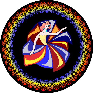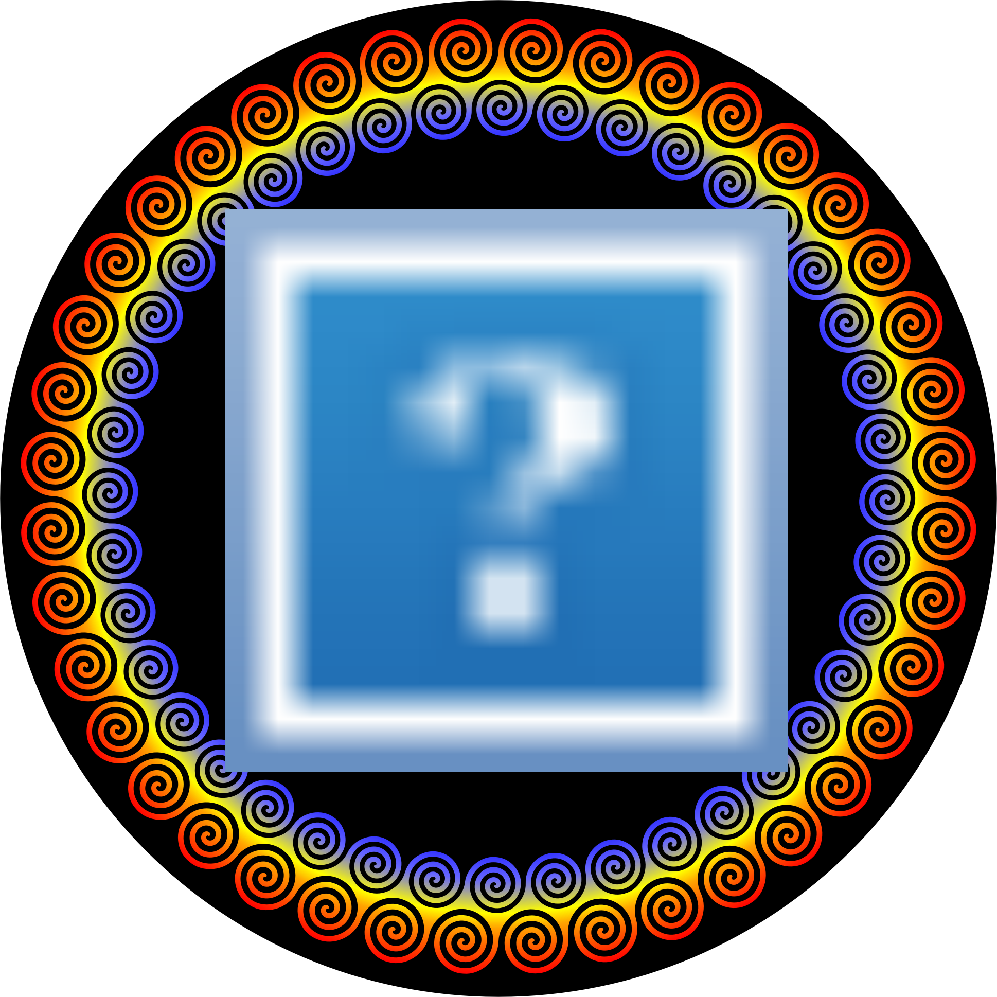 40 linked spirals with 3 turns. Scaled and reused for inside spirals. Image by Firkin added. Frame color and image can easily be replaced.