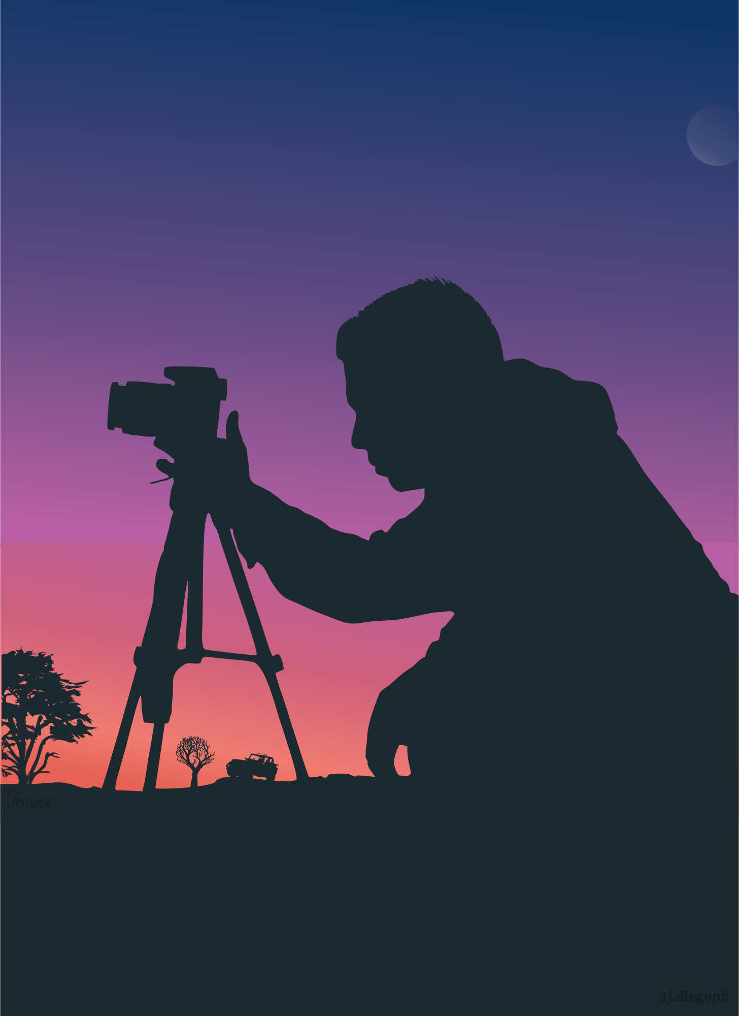 Cameraman Silhouette Sunset with Jeep