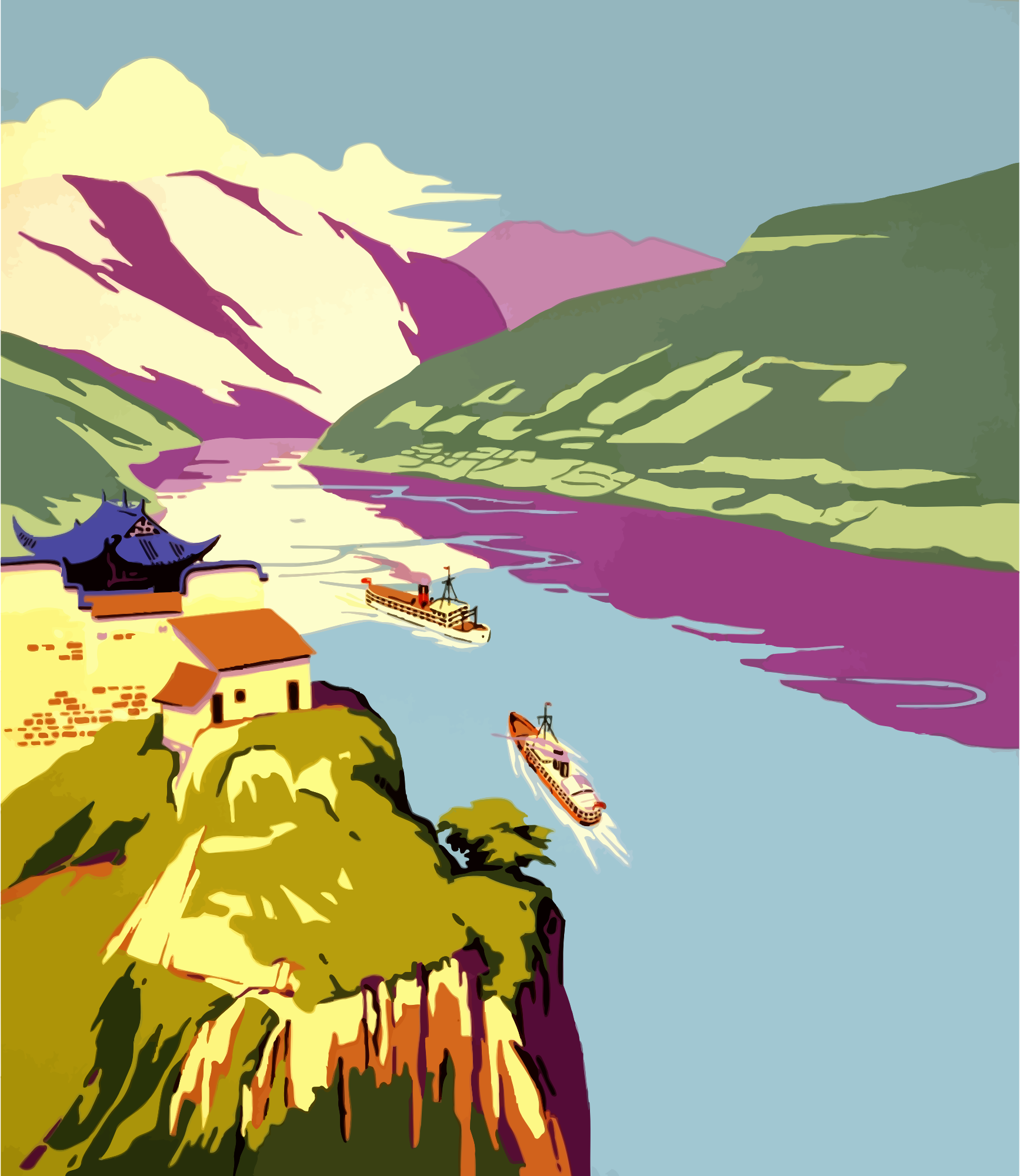 - poster antique vintage travel advert advertisement China Chinese Yangtzse river gorge Cháng Jiāng