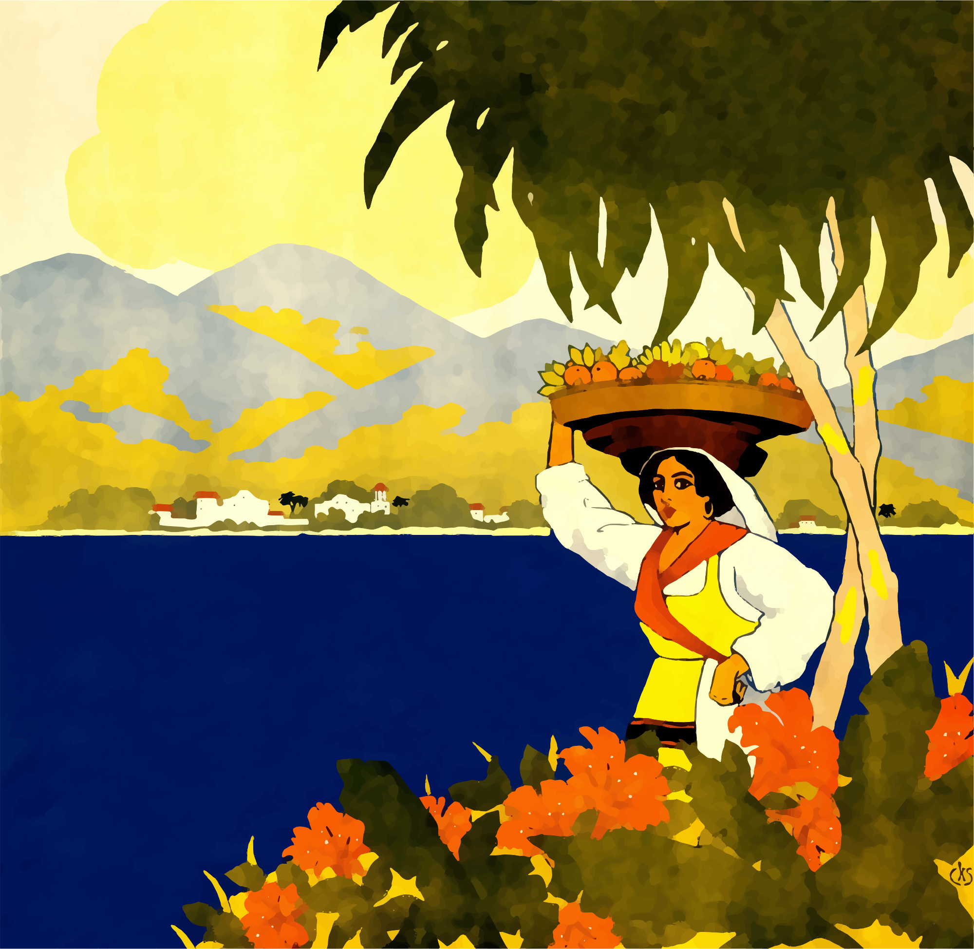 From a vintage travel poster advertising Jamaica. The original poster image was uploaded to publicdomainpictures.net by Dawn Hudson.