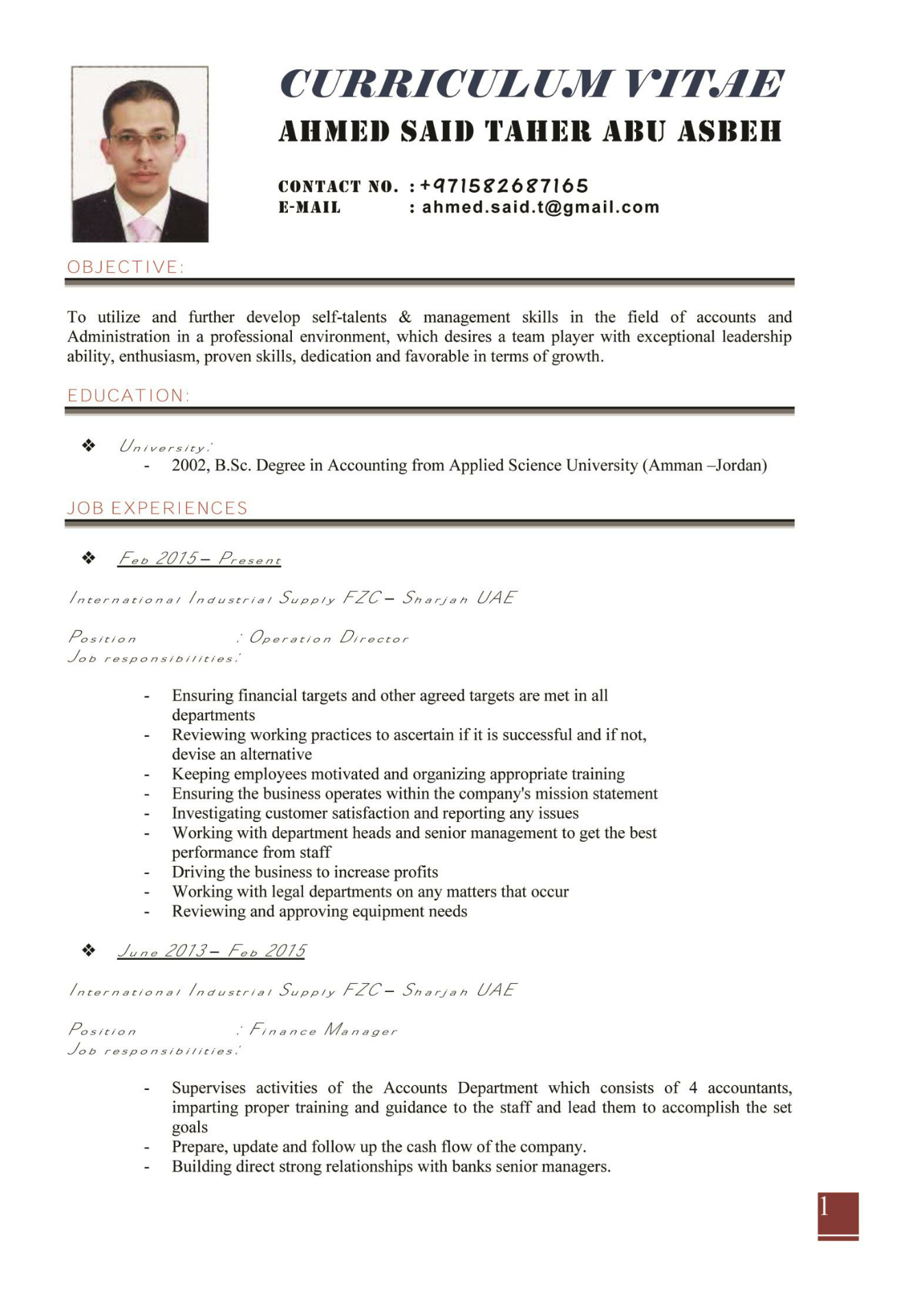 Accounts Executive - Operation Director