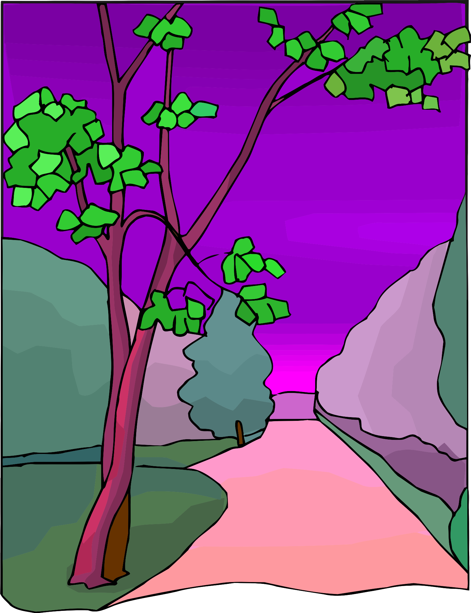 tree plant abstract colourful colorful scene bush sketch