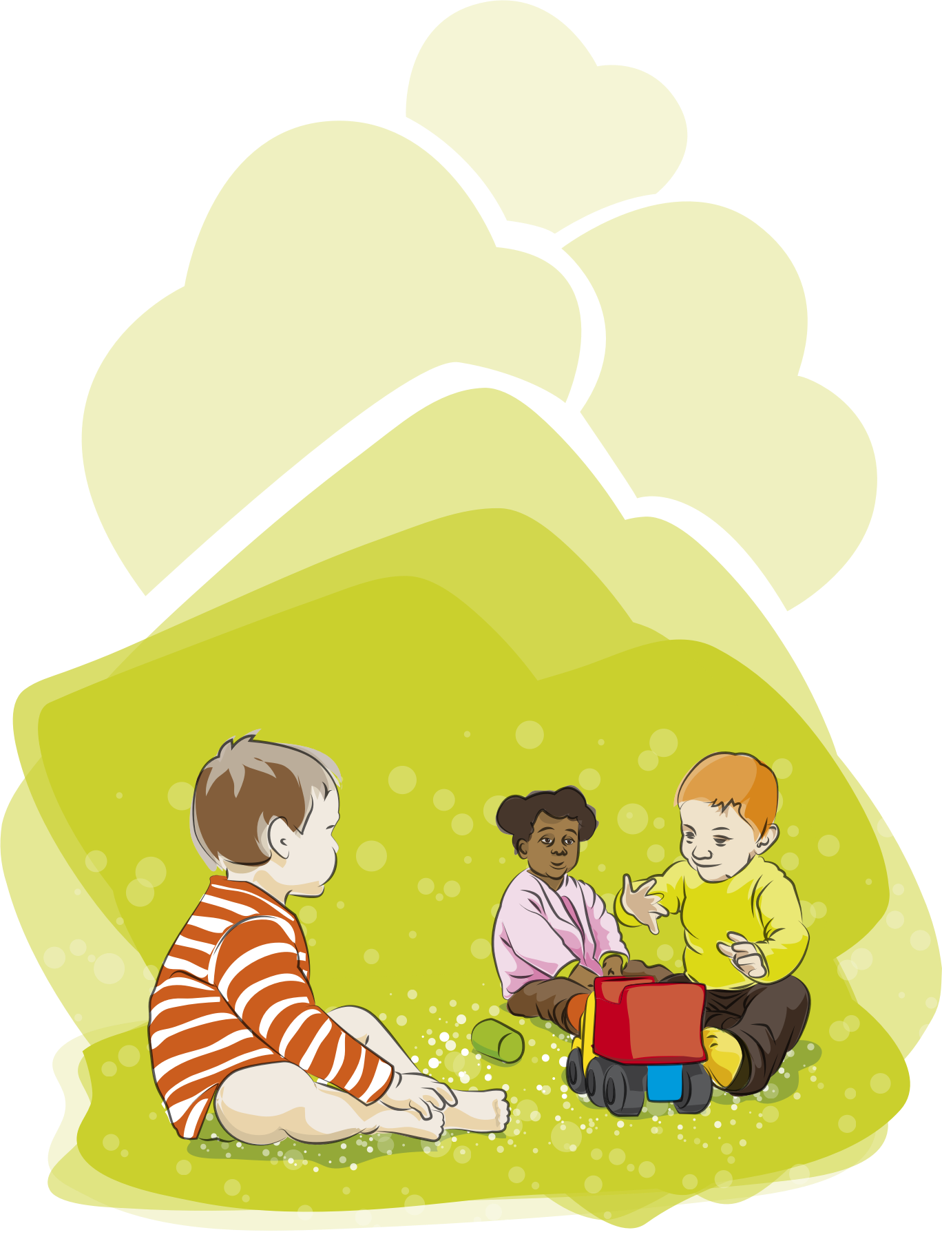 Three children play with truck toy.
