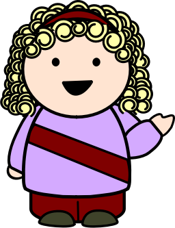 A curly-haired girl who is pointing at something.