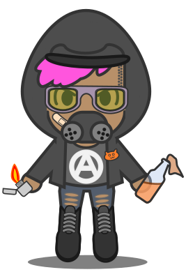 A kawaii antifa queer protester, with gas mask and goggles.