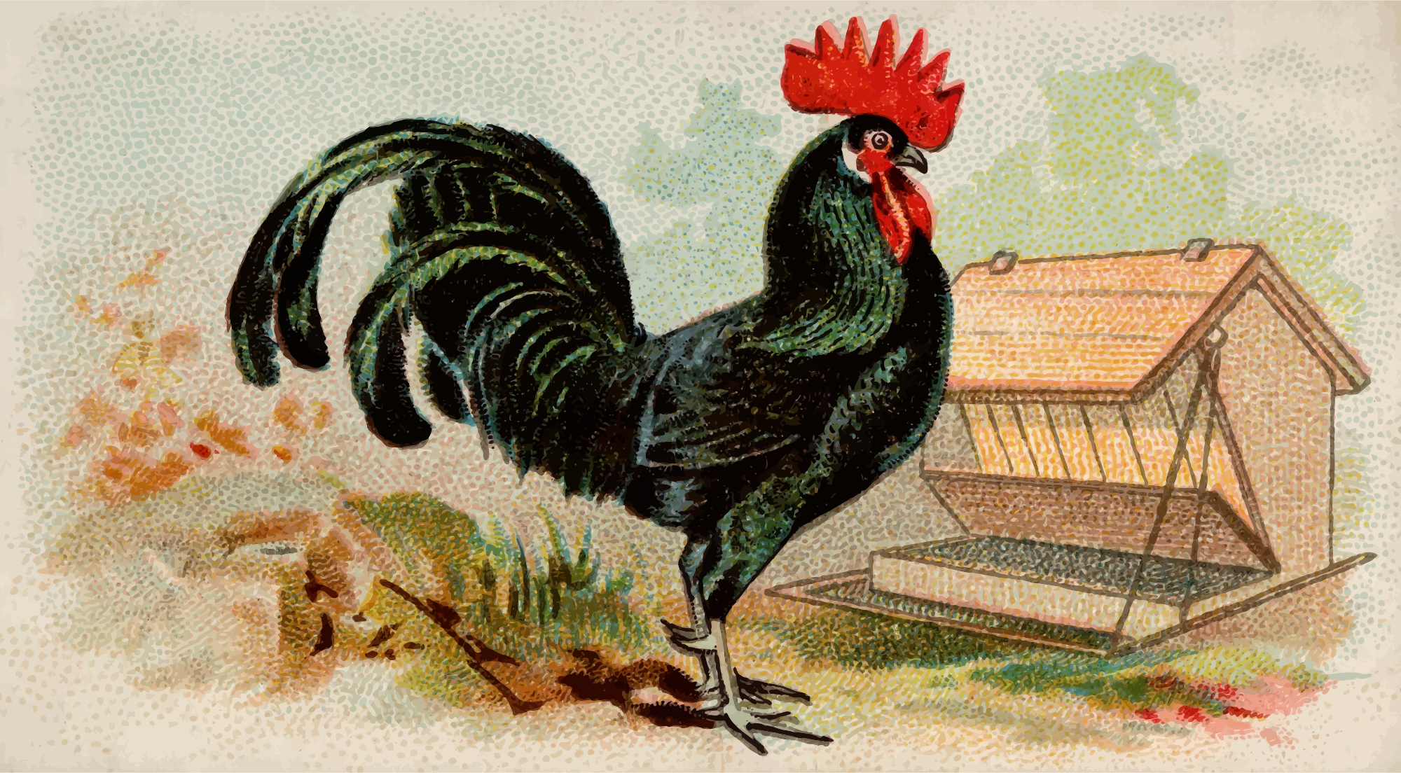 One of the "Prize and Game Chickens" series of cigarette cards from Allen & Ginter, late 1800s. Due to their age I have done a little restoration where needed and also cropped them to just the picture, adjusted contrast, brightness and colour saturation. The originals can be found on the New York Metropolitan Museum of Art web site.