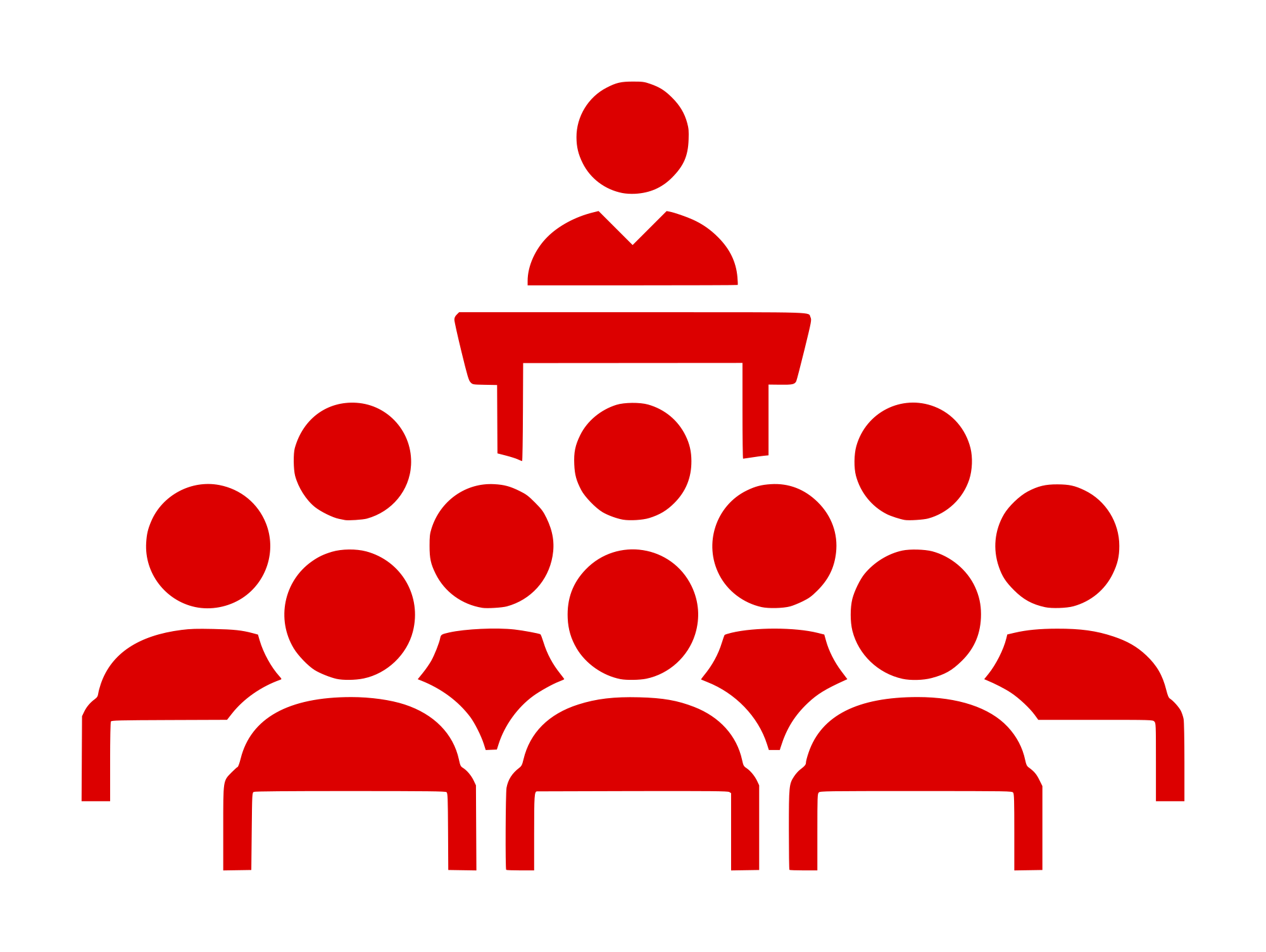 Icon of meeting, lectern, and audience, red