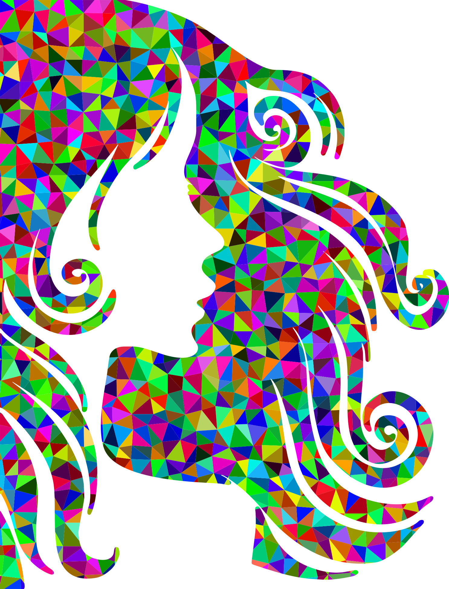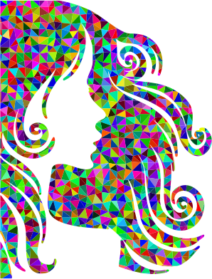Low Poly Prismatic Female Hair Profile Silhouette