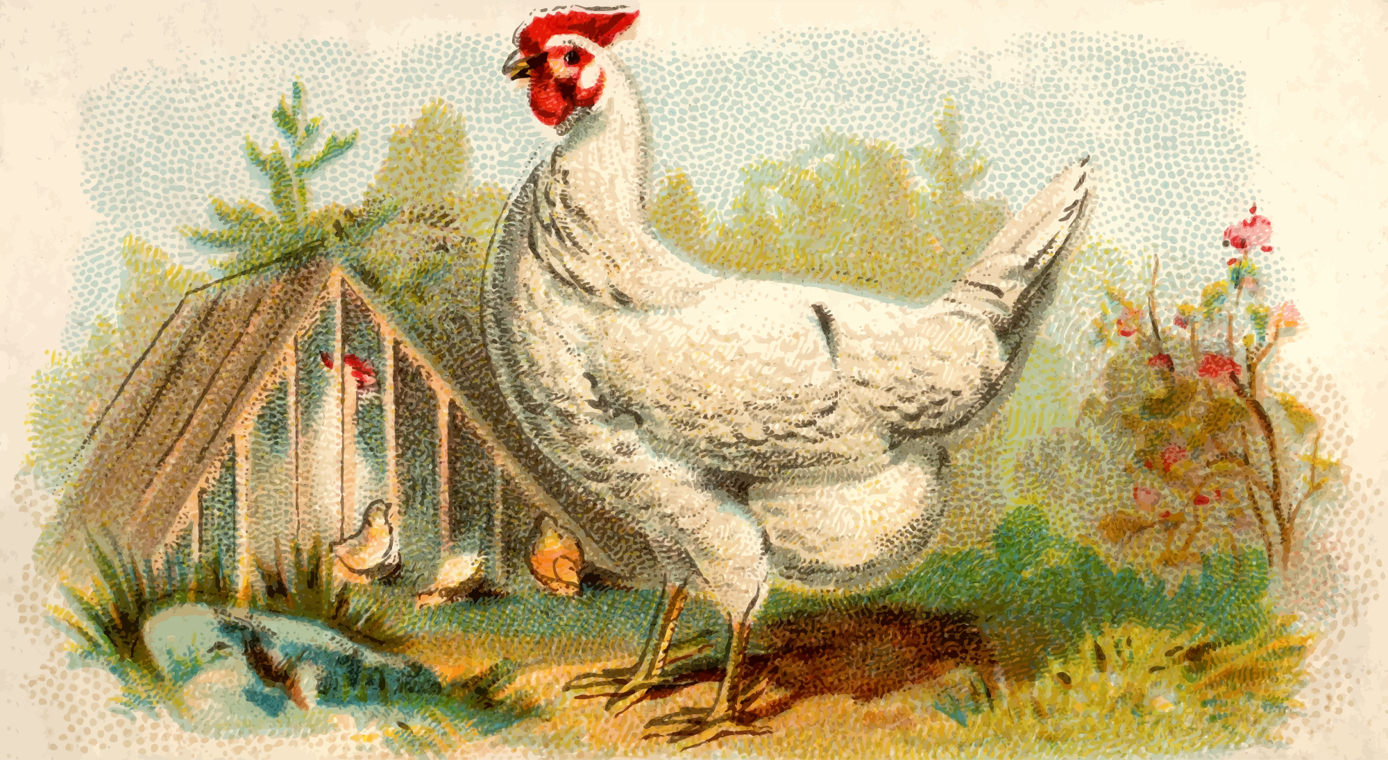 One of the "Prize and Game Chickens" series of cigarette cards from Allen & Ginter, late 1800s. Due to their age I have done a little restoration where needed and also cropped them to just the picture, adjusted contrast, brightness and colour saturation. The originals can be found on the New York Metropolitan Museum of Art web site.