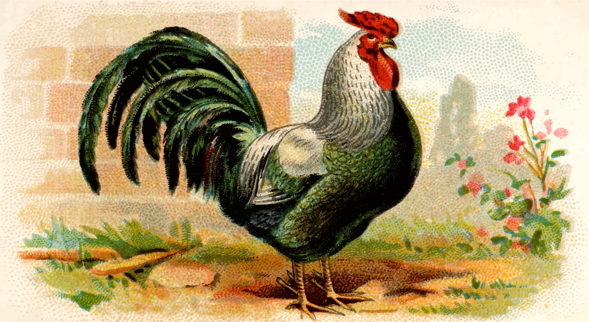 One of the "Prize and Game Chickens" series of cigarette cards from Allen & Ginter, late 1800s. Due to their age I have done a little restoration where needed and also cropped them to just the picture, adjusted contrast, brightness and colour saturation. The originals can be found on the New York Metropolitan Museum of Art web site.