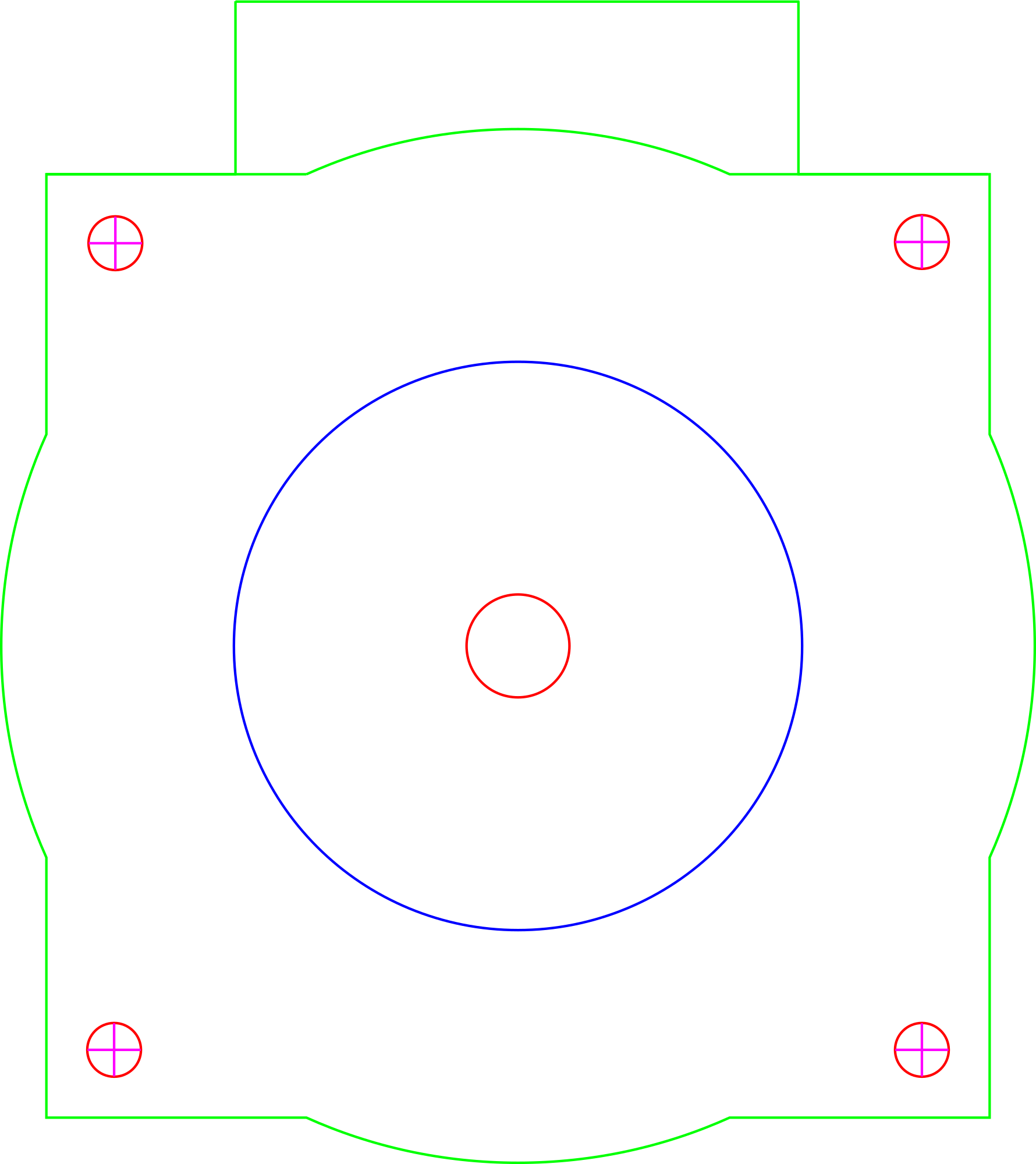 Single-phase variac 0-270 V, 2 A. Centre red hole 12 mm, four fixing screw holes of dia 6.4 mm with centre-to-centre distance of 92 mm. Blue circle indicates knob of dia 65 mm.